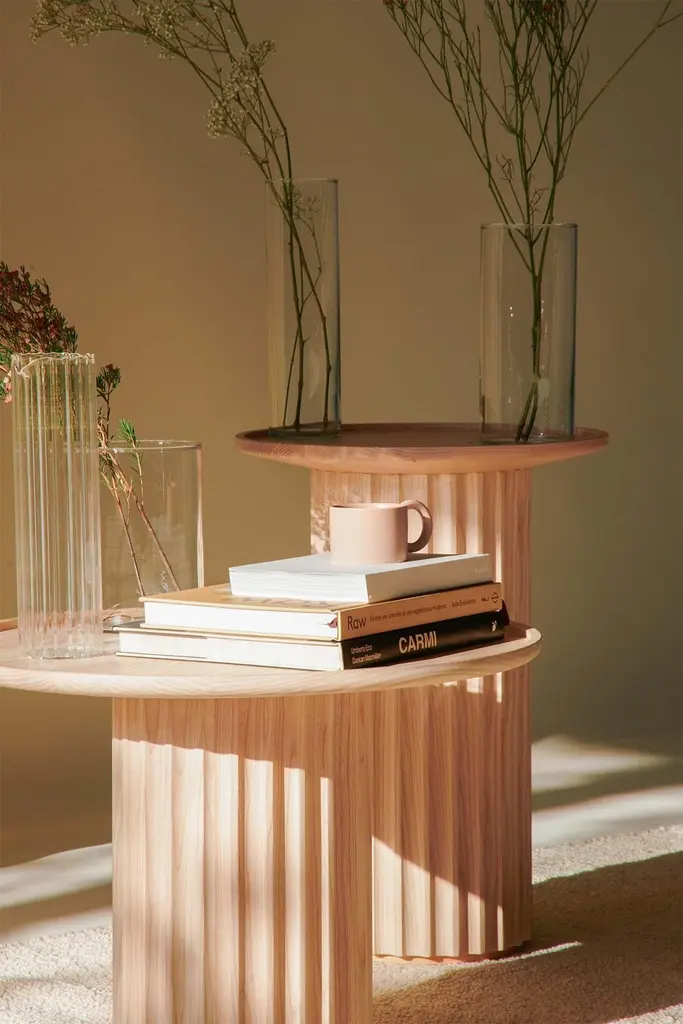 Capitello coffee table is part of our 2023 collection in collaboration with Cono Studio. Dale Italia’s craftsmanship takes on a new prospective and language, creating a contemporary and stylish design.These coffee tables present elementary shapes for an essential elegance. The linear pattern envelops the main visual element with an intriguing play of lights and shadows. While the white ash wood adds a neat natural quality, for a warm and oneiric ambience.