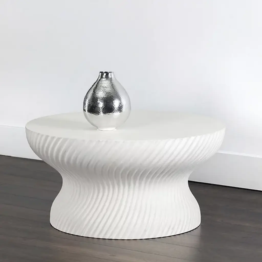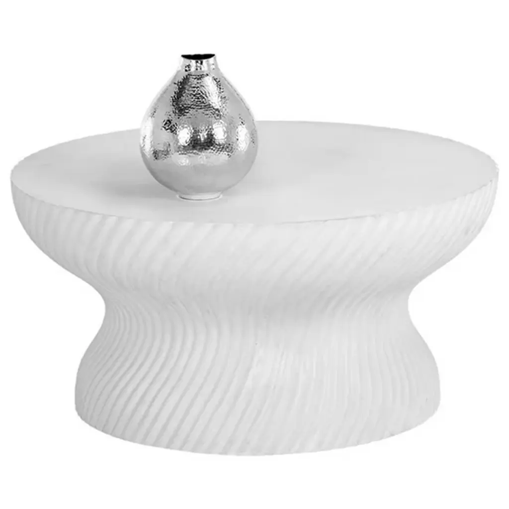 The Cara Coffee Table from Sunpan is a true conversation-starter with its captivating design and artisanal craftsmanship. This rounded coffee table, made from durable glass fiber-reinforced concrete, features a unique swirl pattern along its base which creates a striking blend of form and texture. Hand-finished and sanded to perfection, each table offers natural variations in tone and texture that bring a unique, alluring aesthetic to any living space.