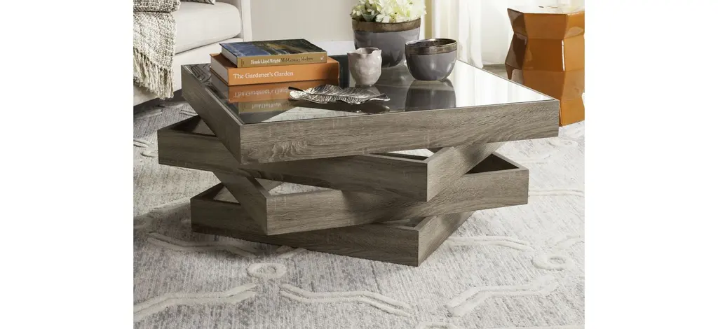 The designs of one of Japan's award winning architects inspired this light grey contemporary Caralyn coffee table. An expert execution of organic geometric style, its natural sculptural form creates its heirloom style aesthetic. Designed for the modern collector.