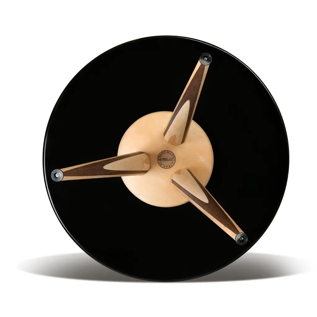 This striking coffee table was designed by Maurizio Duranti who has created a piece made of different types of wood: wenge, cherry, and maple. These three precious materials, with their distinctive hues, contribute to enhancing the geometric patterns of the round top supported by three legs forming a triangular section. A modern piece of decor, this table will be ideal in a modern setting, among bold colors and contemporary furniture.