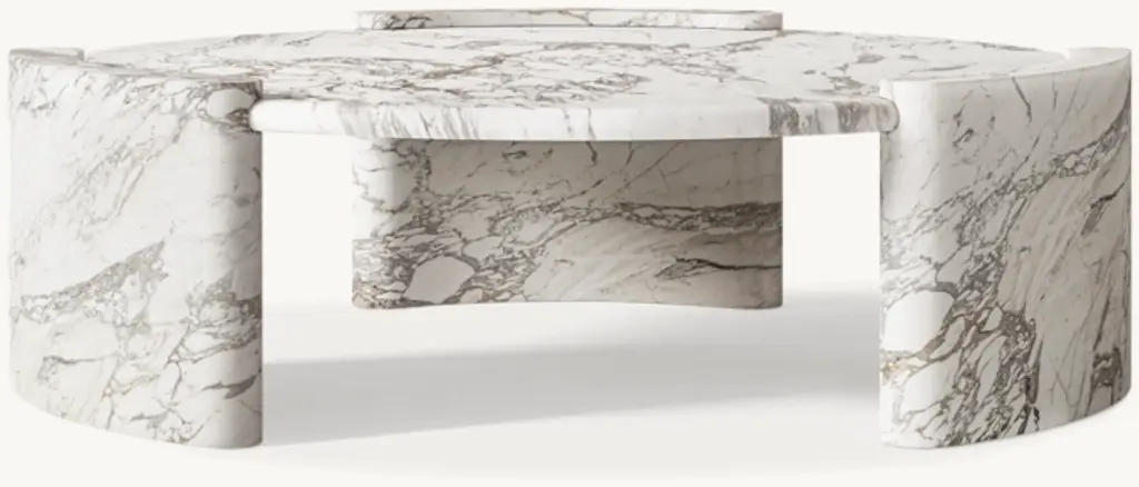Rendered in natural stone, Cardin evokes dynamic Italian biomorphic design. A harmonious interplay of curved contours and crisp edges, the organic, sculptural form is traced with natural veining unique to each piece. SHOP THE ENTIRE COLLECTION