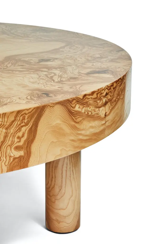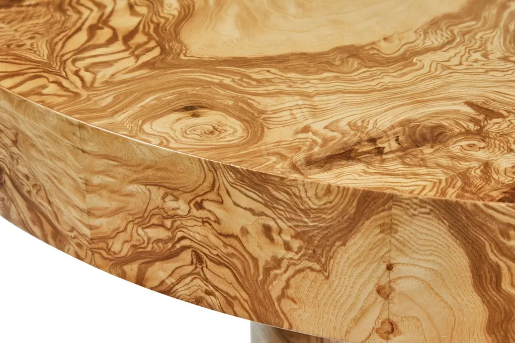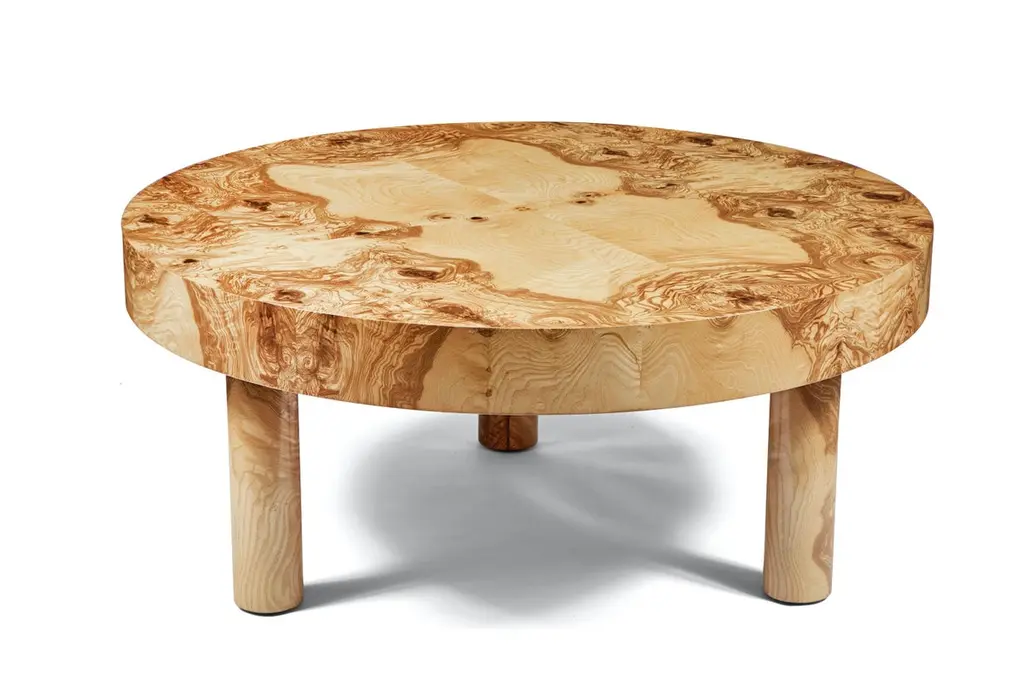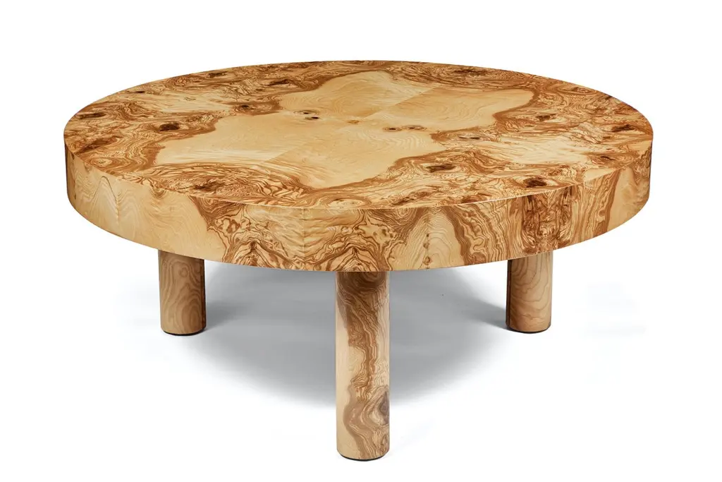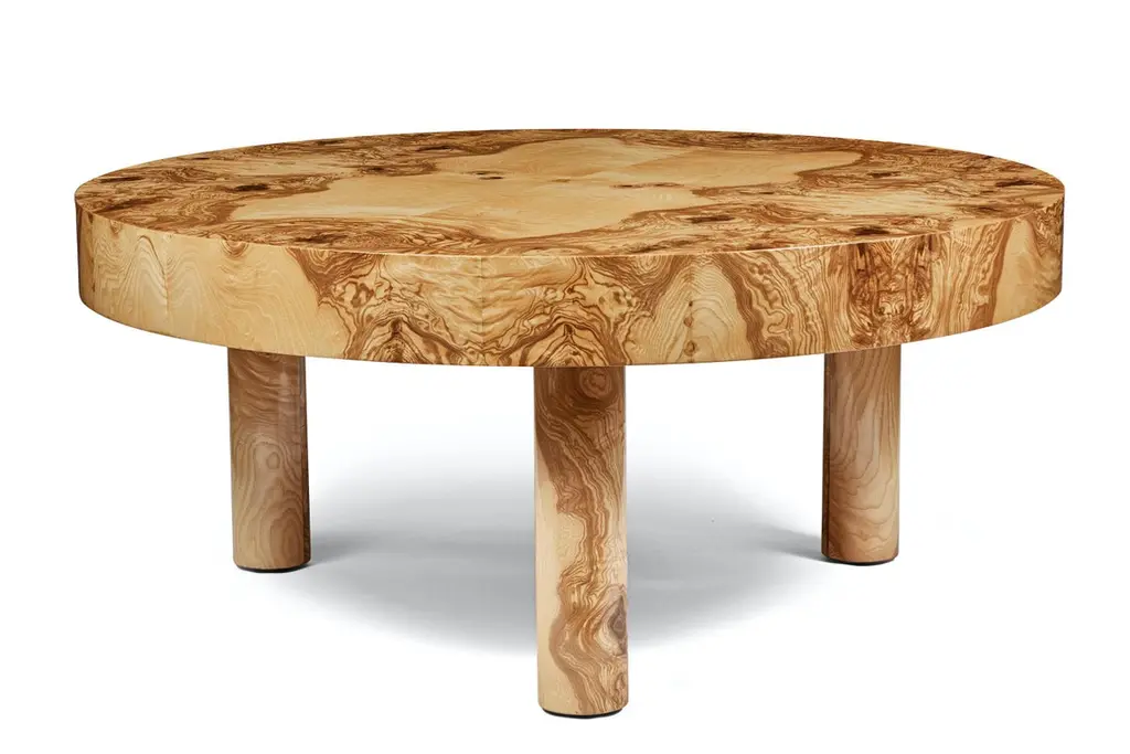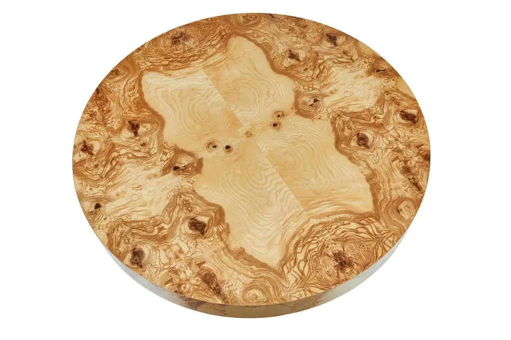 Carlton Coffee Table 36" Dia, In Natural Burl Wood, By August Abode