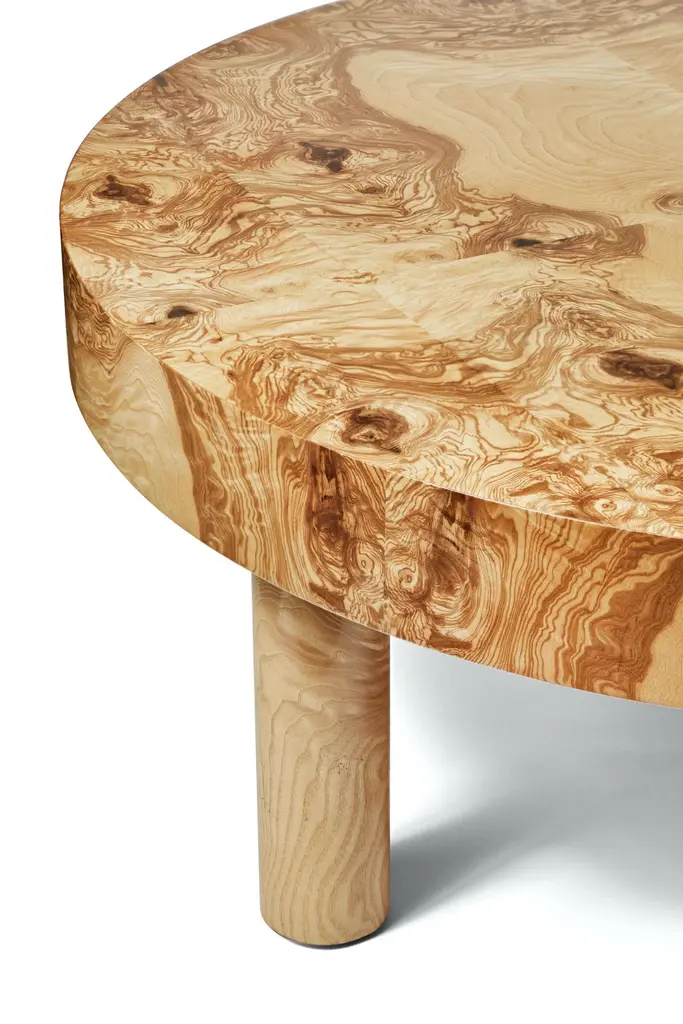 Figural woods and casual, clean lines combine in our Carlton Table, shown here in our Natural Burl Wood finish. It is also available in Mappa and Vintage Burlwood. Dimensions: 16" H x 36" DIAAbout this piece: Natural variations are inherent to the material. As a result, graining and patterning can vary greatly from one table to another. This is not considered a defect, but is part of the natural beauty of the material. The underside of the table is finished in a solid lacquer. Inquire about custom dimensions. All of our pieces are bench-made in Los Angeles by local artisans.About August Abode:August Abode is a moving portrait of California life, an invitation to reconnect with the allure of nature to enhance our everyday lives. Founded in Los Angeles in 2019 by designer Stefani Stein, August Abode is an artisan-made home collection capturing the West Coast spirit of endless summer. We make relaxed and refined statement essentials inspired by the beauty of living in the golden state.Through observation and abstraction of nature, we design furniture and wallcoverings in which form, function, and fine craftsmanship have the ability to positively impact our everyday lives through our homes. We are committed to making responsibly, not overproducing. Our view is to make future heirlooms. Discouraged by the impact of Los Angeles landfills being the largest in the county, we aim to reduce our participation in the epidemic of thoughtless production. Our made-to-order pieces encourage a steady flow of business to LA’s rich artisan trade community, while keeping our production process local and environmentally ethical. We are investing in the next generation of skilled makers to encourage a sustainable and vertical model that reduces wasteful production.