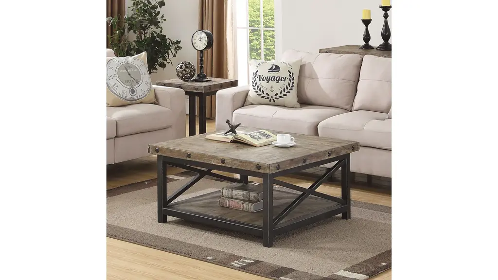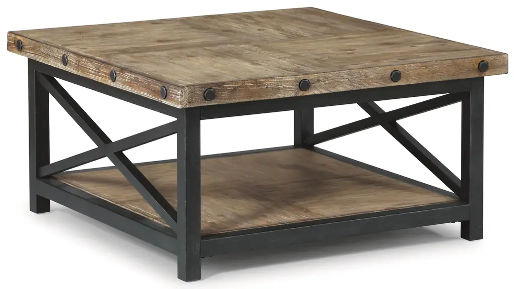Transform your living room into a casual, modern rustic haven with the Carpenter Coffee Table. A roomy top keeps cocktails and snacks conveniently close at hand, while an open lower shelf provides additional space for books or dcor. Made with solid acacia wood, this coffee table features a well-worn look that is highlighted by either a brown or light brown finish. Other design details include wood planks that are distressed for a reclaimed look, hand-worked metal frames and exposed bolt heads that are finished to resemble aged, oiled industrial steel.
