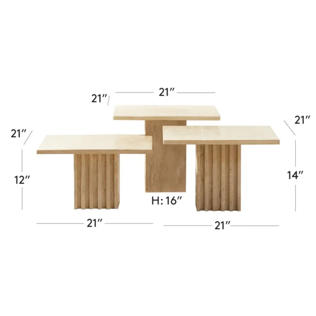 Designed by Studio ANANSI, square side table is made of pure, unpolished travertine inspired by 1970s Italian modern designs. Featuring an architectural silhouette in a style we're calling "soft brutalism." Fluted details on the base and variation in the natural travertine add to the coveted vintage feel. CB2 exclusive.
