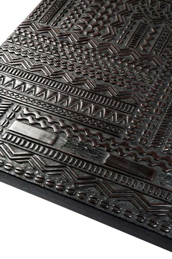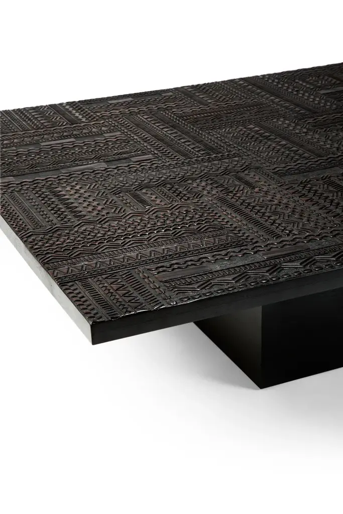 The Carved Teak Coffee Table offers a timeless centerpiece of minimalistic silhouette with a distinct character. This rectangular Tabwa coffee table is embellished with intricate patterns that have been carved by Ethnicraft's skilled artisans. Inspired by the Tabwa culture from Central Africa,known for their love of linear geometric designs, this collection encapsulates culture and craftsmanship in harmony. This table features a geometrical base that adds to its contemporary appeal.