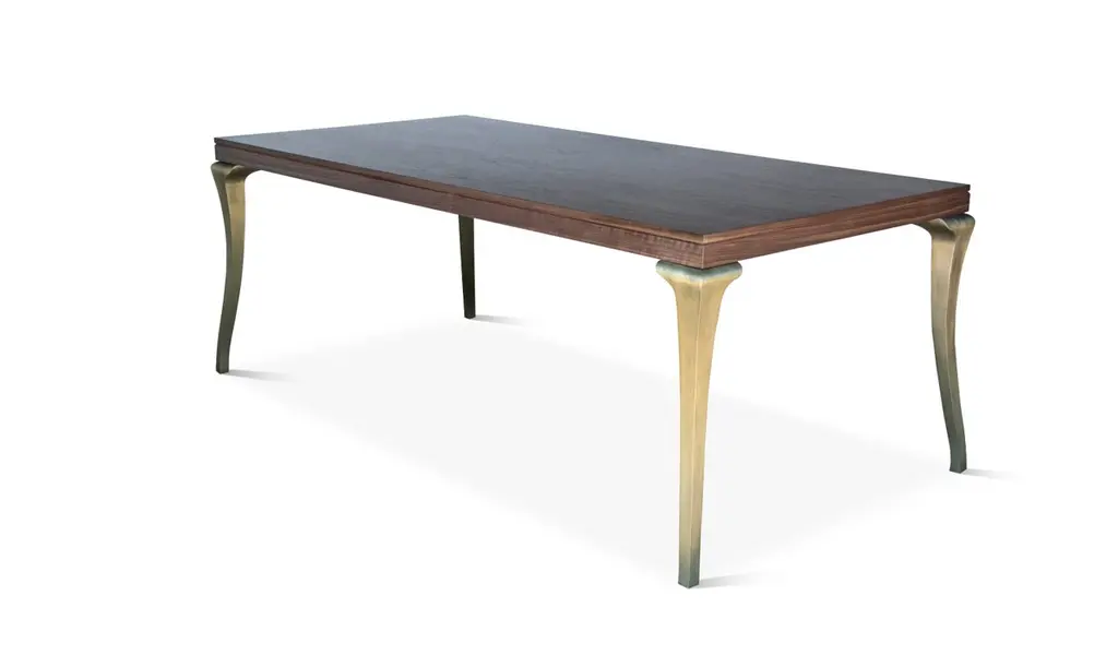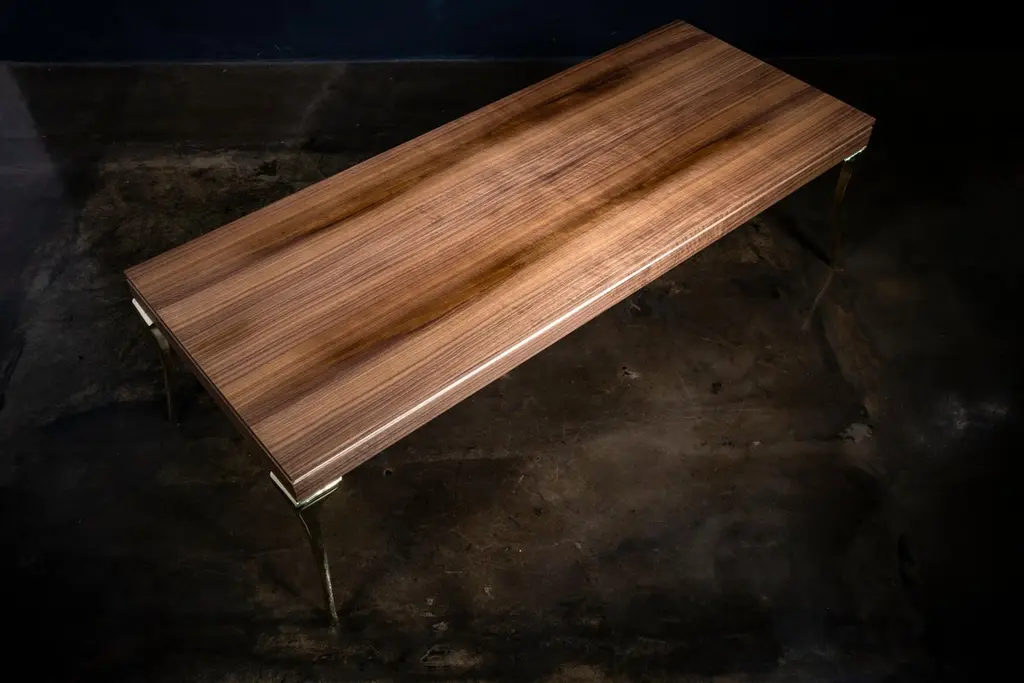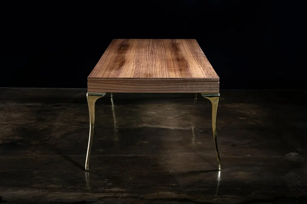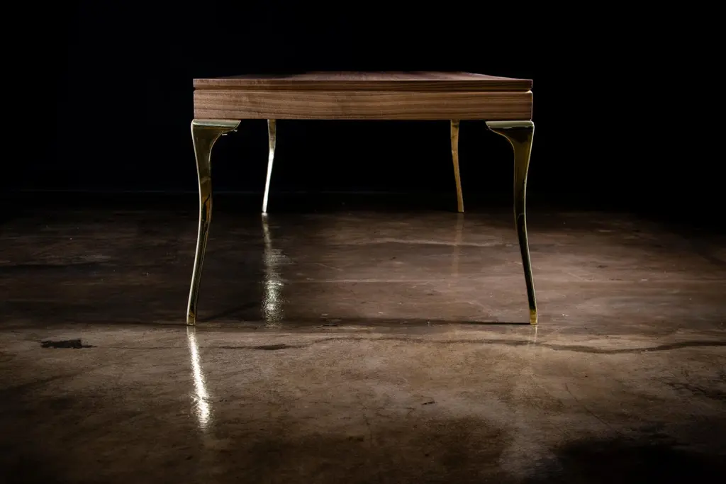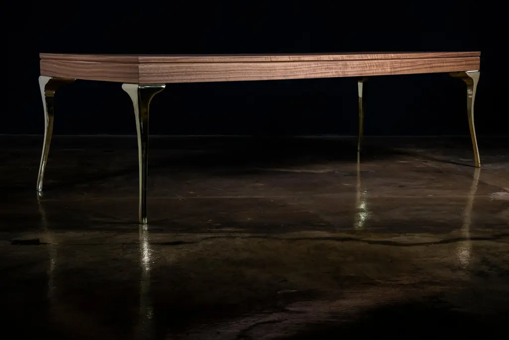 The Enzio Coffee Table features a modern take on a classic Queen Anne form in its cast bronze legs. Available as shown with a walnut top, or in any size, shape or material including stone, metal, or other wood species and finishes.