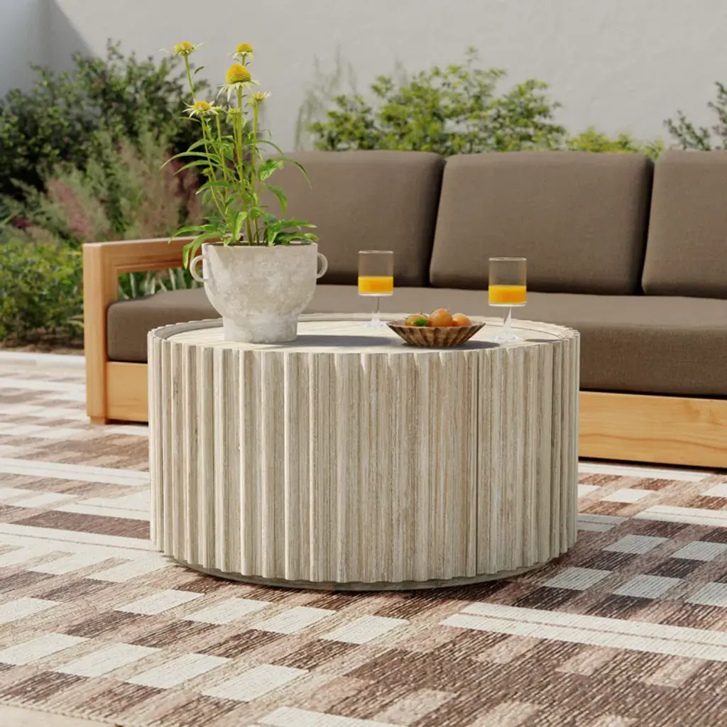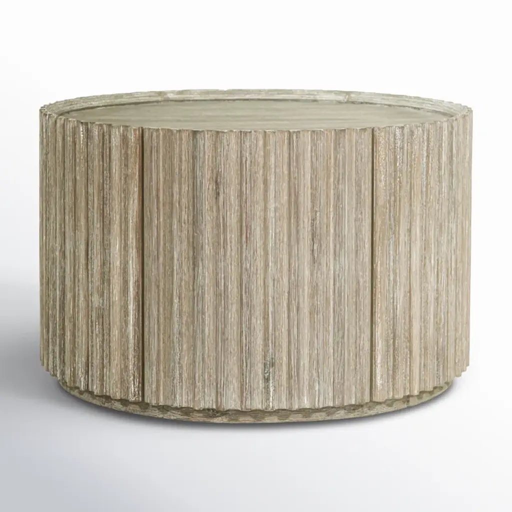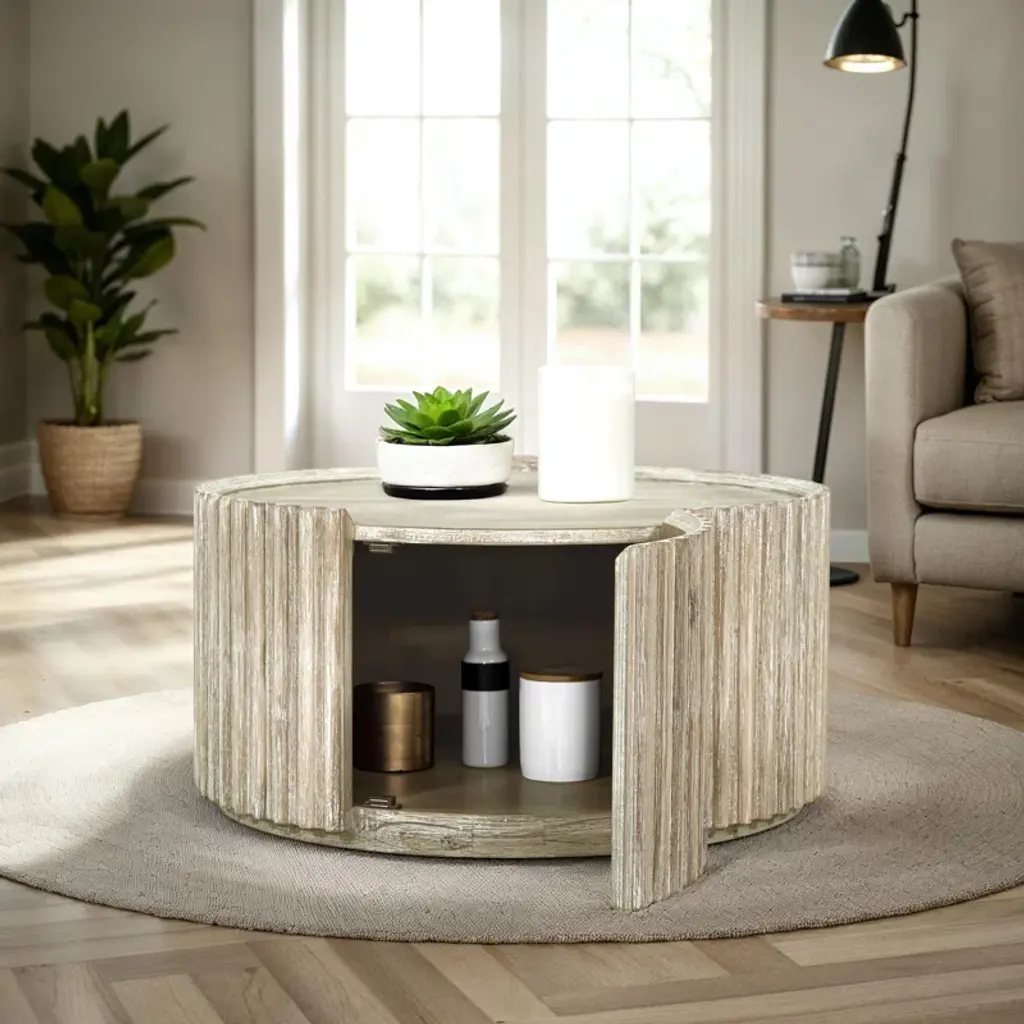 Transform your living area into a coastal sanctuary with the oasis round coffee table equipped with a single door. Ingeniously crafted, this table excels in design, functionality, and construction, embodying the serene aura of a seaside retreat. A standout characteristic is the integrated door, providing hidden storage space while upholding a minimalist aesthetic.