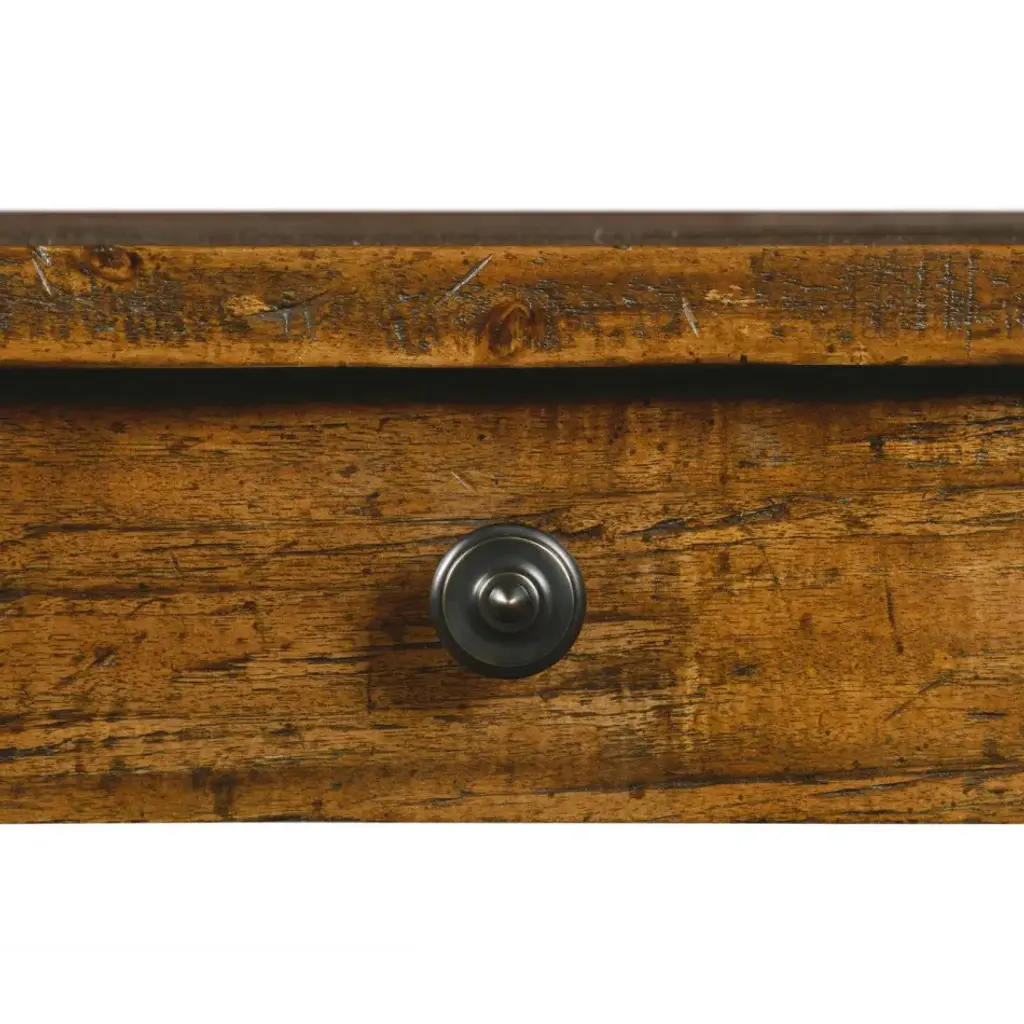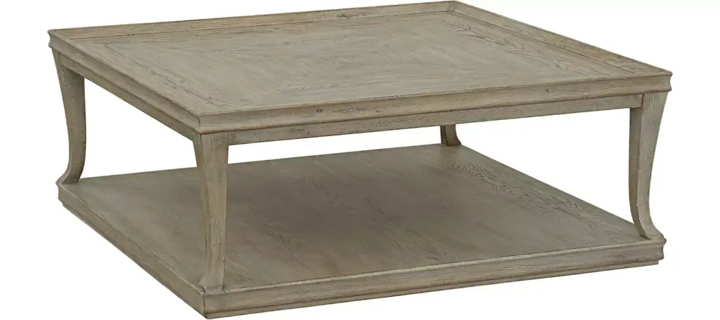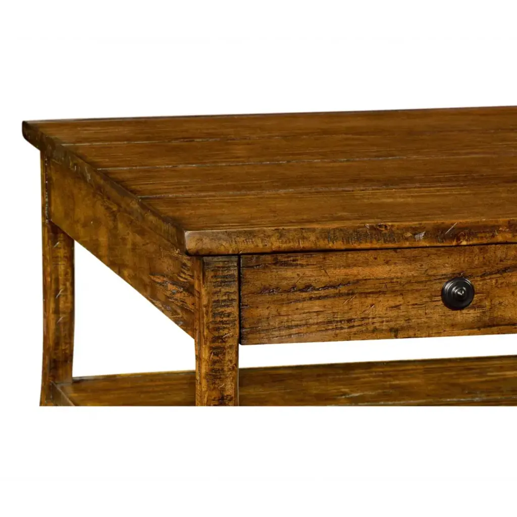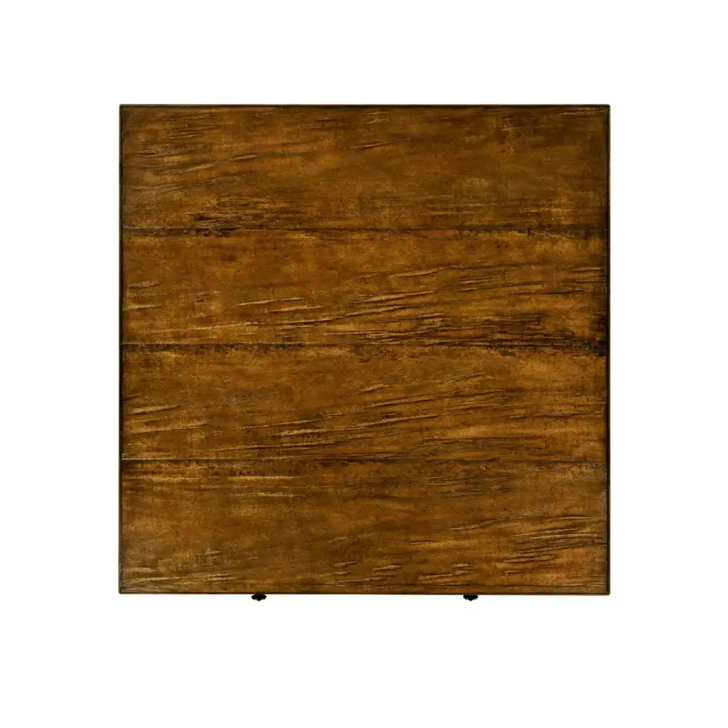 491041-CFW Square country walnut coffee table with two drawers and brass handles.