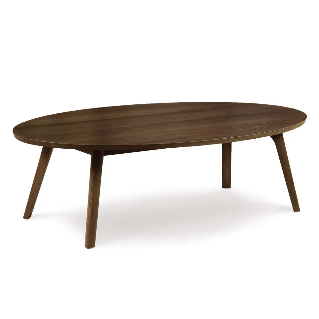 The Copeland Furniture Catalina Oval Coffee Table is a versatile piece that will fit into any modern living space. The expansive oval top shows off the rich tone and distinctive grain of the Solid American Black Walnut or Natural Oak, while the splayed legs provide stability. Available in two heights and with a Greenguard certified top coat to protect the natural walnut finish.