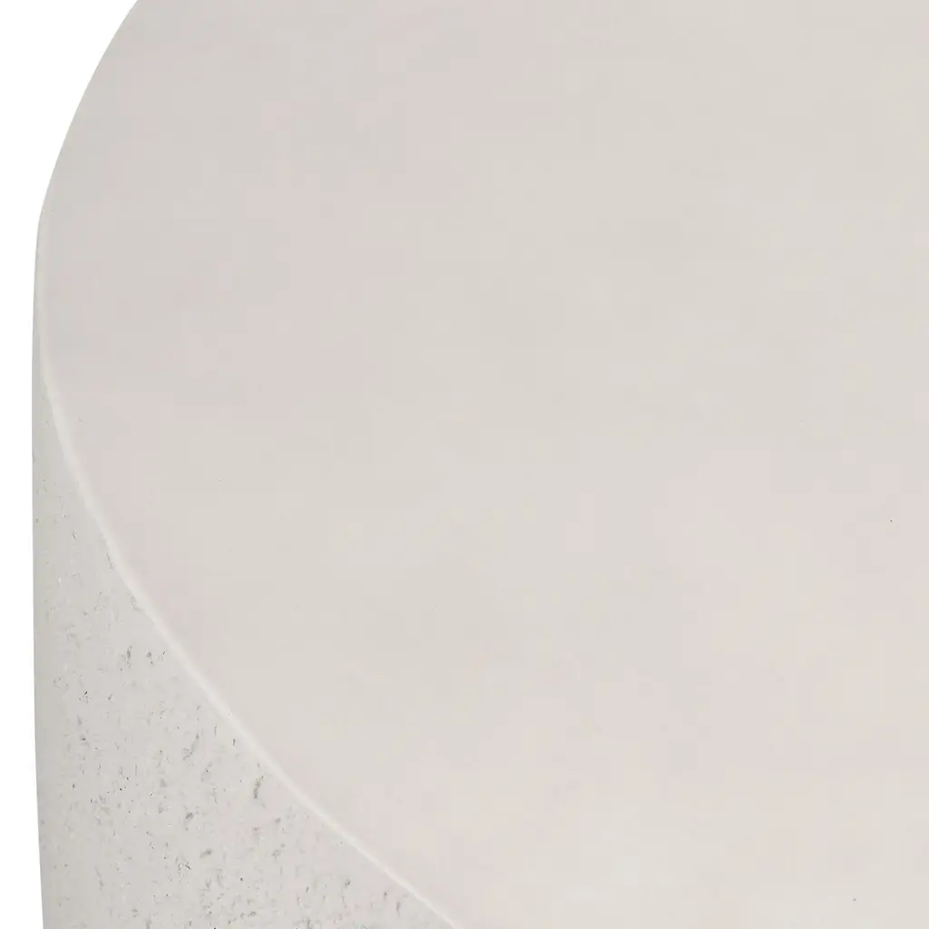 Bring a touch of industrialism to outdoor styling with this drum-style outdoor coffee table. Solid cream-colored concrete atop a plinth base features raw edging for texture, with a smooth, clean surface. Cover or store indoors during inclement weather and when not in use.