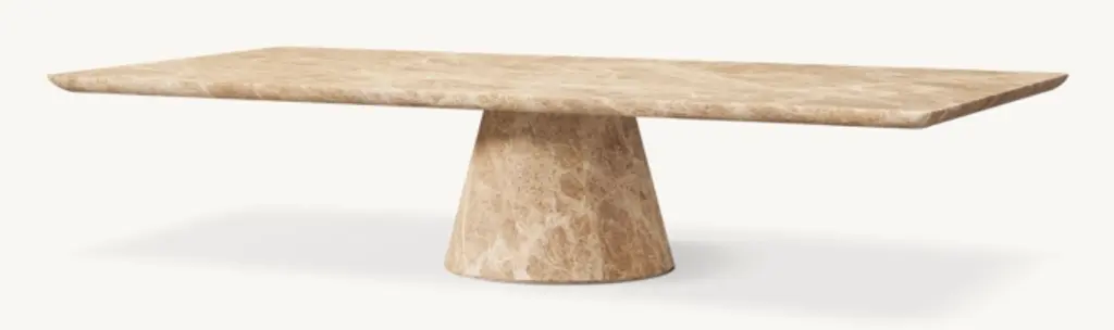An archetypal 1970s silhouette, our Cellini table exhibits the tailored restraint and understatement of Italian minimalist design. Crafted of natural stone, the form's gracefully tapered pedestal and smoothly rounded top communicate an organic purity, replete with natural veining and pitting that make each table unique. SHOP THE ENTIRE COLLECTION