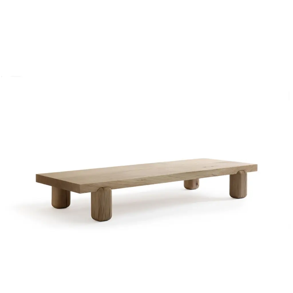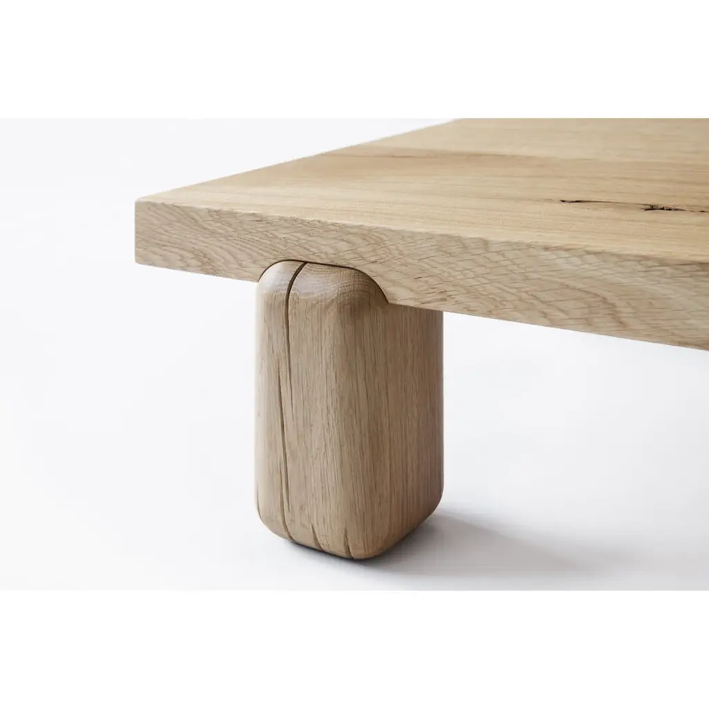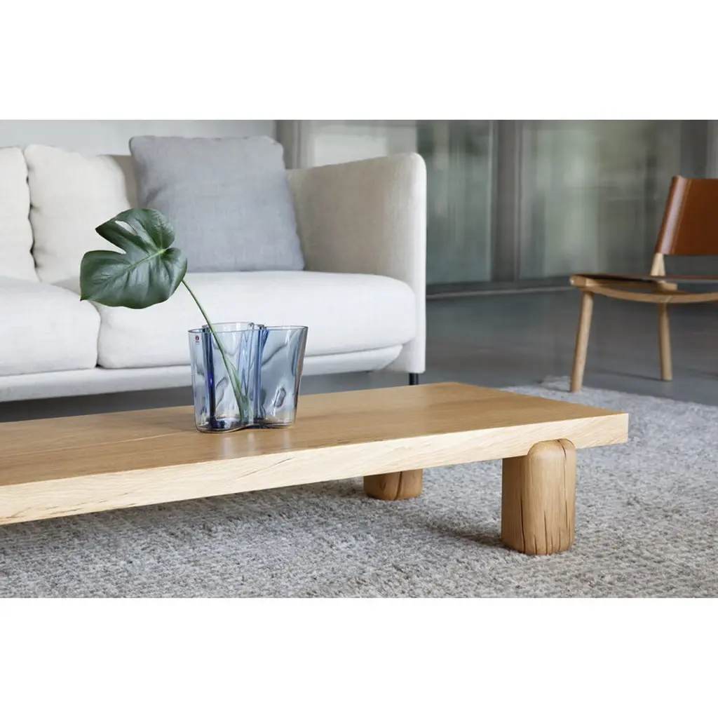 Nikari's Centenniale coffee table exudes a captivating and organic esthetic that charms any space. The low coffee table consists of robust, gently contoured legs that provide sturdy support for the thick, sharp-edged tabletop. Designed by Joanna Laajisto, the Centenniale table is made from 100-year-old oak, exhibiting charming color variations, cracks, marks and distinctive wood grain patterns intentionally left visible on the table's surface. While some may perceive these variations as flaws, the designer herself regards them as inherent qualities of the material, deserving to be highlighted. The name of the table, Centenniale, refers both to the age of the material used and to the table's expected lifespan of centuries.