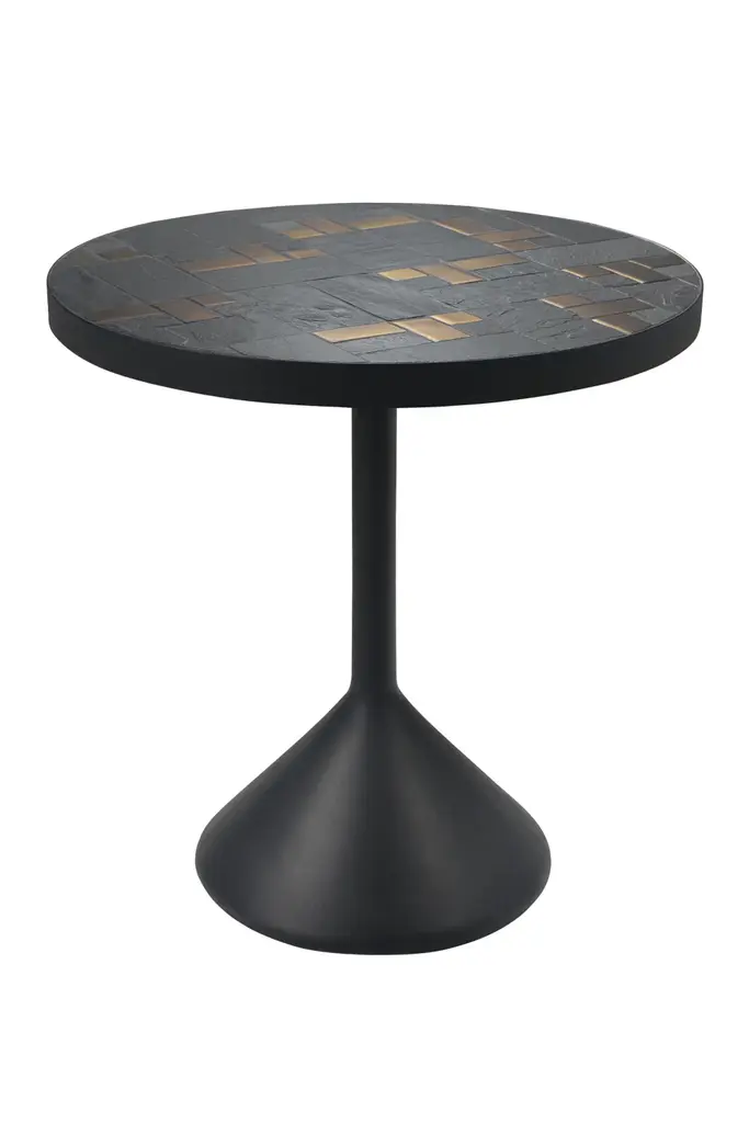 Sleek and minimalist, the Labo Slate Coffee Table by Versmissen is a stunning example of modern design. With its black construction featuring a concrete base, natural slate, and ceramic tile top, this piece exudes contemporary elegance. The round top and pedestal base create a sense of cohesion and balance, adding to its visual appeal. It becomes a focal point for relaxation as it enhances the ambiance, making it a perfect choice for those seeking both form and function in their furniture.