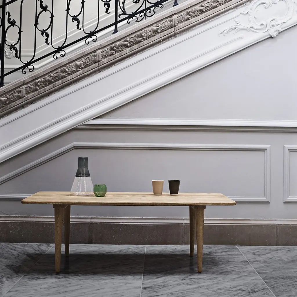Designed by Hans J. Wegner in 1954. The simple and elegant CH011 table embodies Wegner's ideology and spirit for simplicity. Wegner, with his unique understanding of wood, its possibilities and limitations, created many designs each with its own personality yet in a consistent language. The CH 008 was originally designed by Hans J. Wegner to compliment the CH 25 Easy Chair but is a great companion for the CH007 Shell Chair as well.