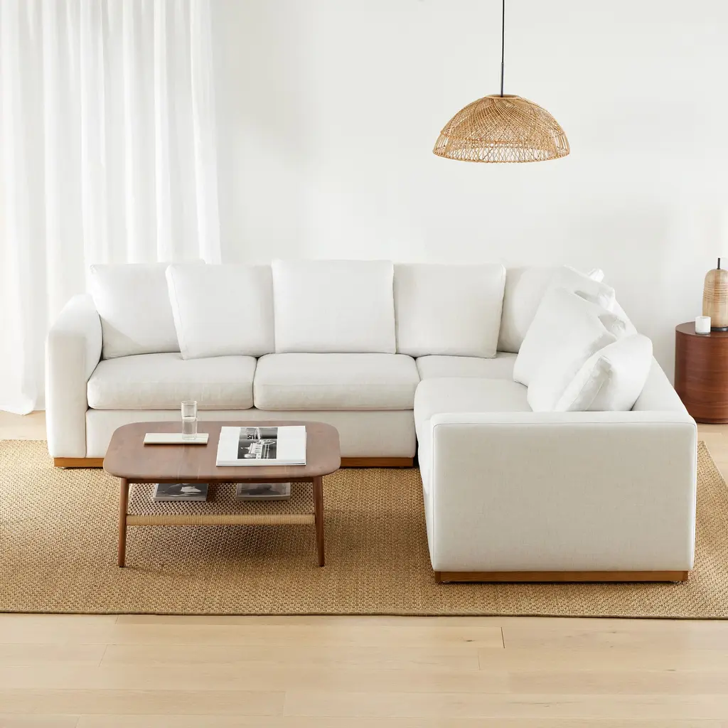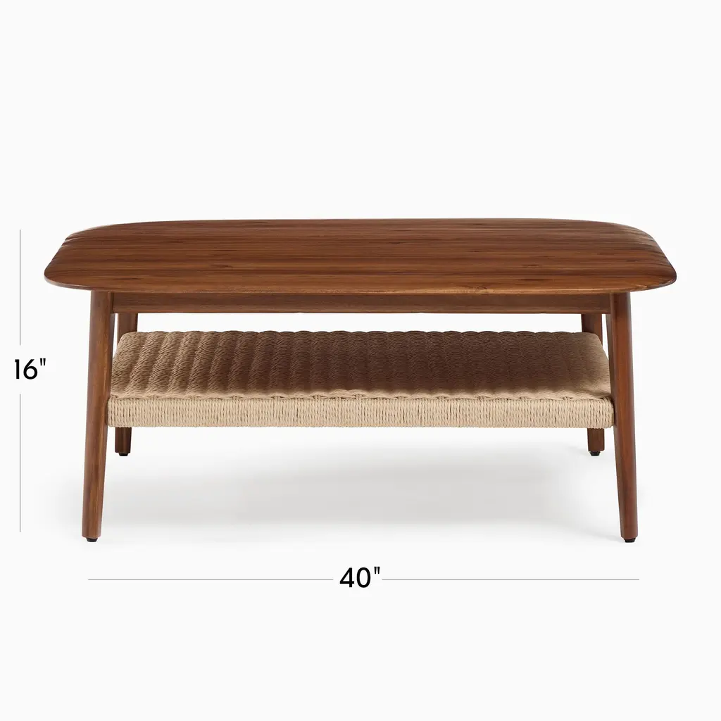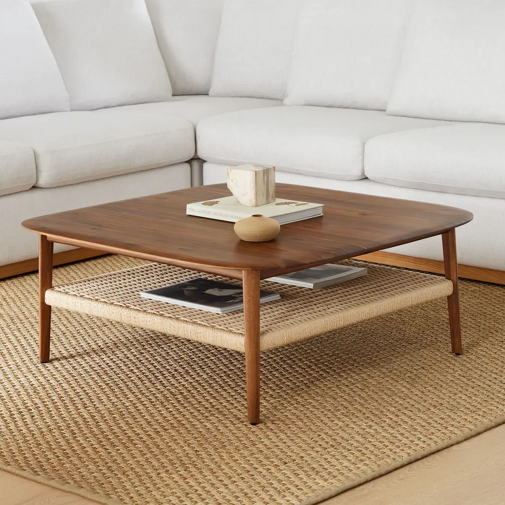 Showcases warm tones & mixed materials. Textural woven shelf adds natural elegance. Rich walnut finish goes with anything. Contract Grade for unmatched durability.