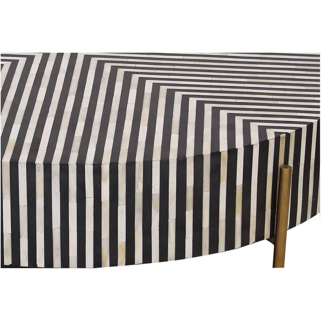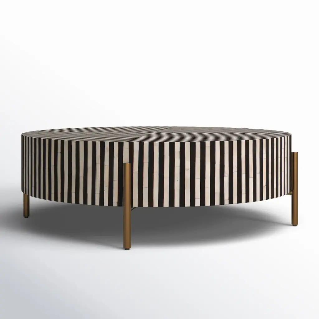 Elevate your next session of high tea with the beautiful look of camel bone veneer. The Chameau coffee table has a low to the ground profile and circular design with sleek, brass metal legs to create a lighter feeling. Thanks to its massive real estate, the Chameau coffee table has plenty of space for everything from macarons to sandwiches.