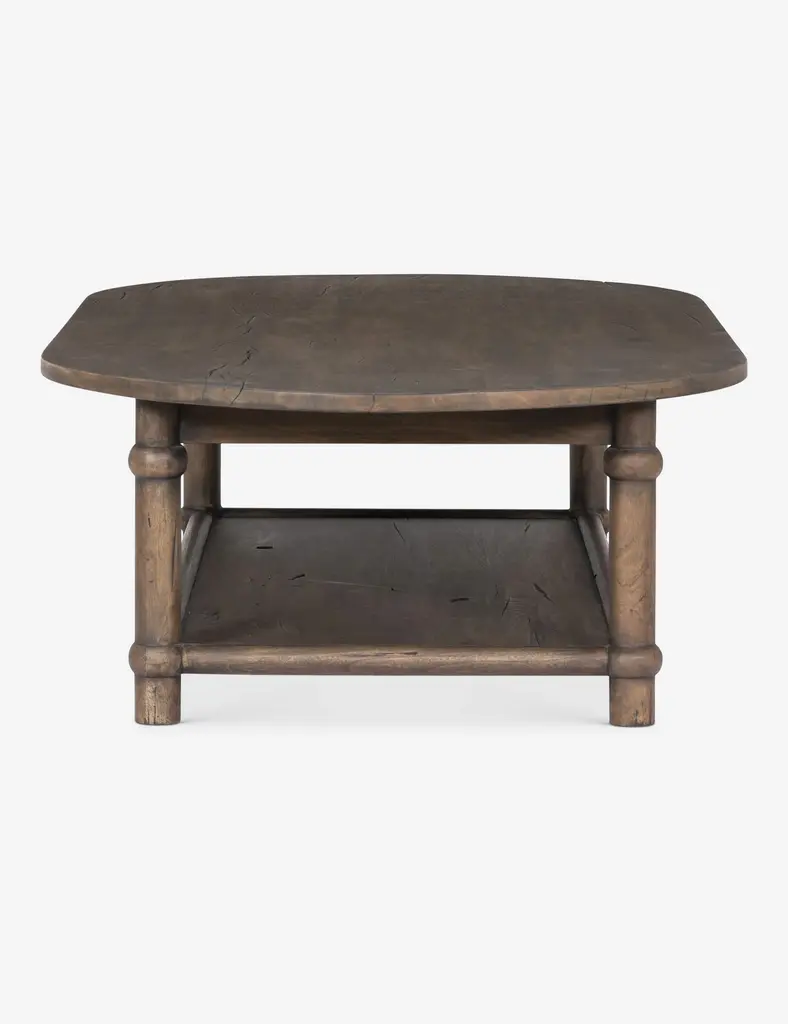 Four Hands brings their exceptional craftsmanship to a timeless collection rooted in Amber Lewis' perennial California style. Blending vintage and modern design elements, this wood coffee table is an inviting centerpiece. The coffee table's oval top is curved and refined, while a full lower shelf adds a perfect place for books and decor.