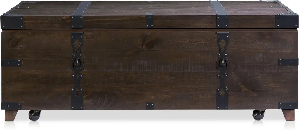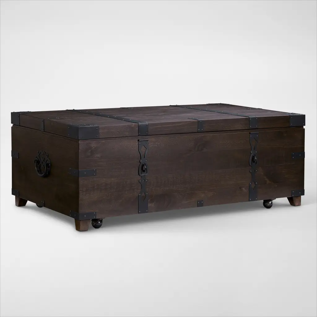 From one of our best-selling collections, the Charthouse Trunk Coffee Table brings the same modern farmhouse style and sturdy craftsmanship you know and love. Lift the top for extra storage space. Plus, the casters on the bottom add effortless mobility.