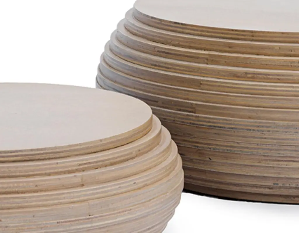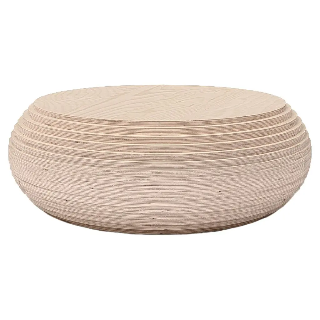 The Cheese Small Coffee Table is a distinctive and modern piece crafted from laminated plywood, showcasing the natural beauty and strength of this material. This table is designed with a minimalist aesthetic in mind, making it a versatile addition to any living space.Its sleek, rounded shape is inspired by the smooth, organic lines of cheese wedges, giving it a unique, playful character that stands out in any setting. The laminated plywood construction not only adds to its visual appeal but also ensures durability and stability. The layers of wood veneer are carefully bonded together, creating a surface that is both strong and visually interesting, with the edges revealing the rich texture of the layered plywood.Compact in size, the Cheese Small Coffee Table is ideal for smaller spaces or as a complementary piece in a larger room. Its surface provides ample space for drinks, books, or decorative items, making it both functional and stylish. Whether placed in a living room, office, or lounge area, this table adds a touch of contemporary elegance and a warm, natural feel to the environment.