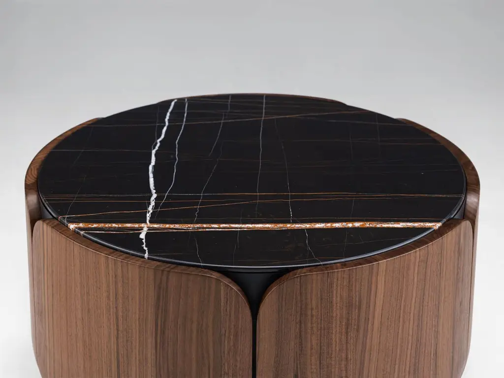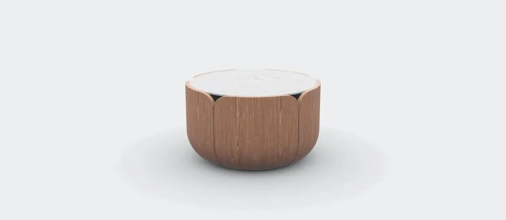 Cherry Sepia Bianco Namibia Bloom Coffee Table M by Milla & MilliSigned by Maša Vukmanović, Jelena Lukač Kirš, Jakov ŠrajerDimensions: W 70 x D 70 x H 40 cm Materials: Cherry Sepia, Black Metal, Marble Bianco Namibia. Bloom Coffee Table:Flowers are one of nature's most delicate things of wonder. So enchanting, yet so fragile; inspiring, but short lived. Bloom coffee table manages to immortalize that beauty, to encapsulate the magic of a living flower in a fascinating creation of solid wood and marble. It is a single flower that transforms your space. Forever.Milla&Milli started out as a brainchild of two artlovers; a shared dream of two souls in love with design, wood and each other. And to this day, that love and passion is still clearly embodied in every masterpiece we create.Meet Ksenija and Ivić Pašalić, two halves of one Milla&Milli heart and the driving force behind everything you have seen so far.A CELEBRATION of design:"We truly live and breathe design. We love it, respect it, encourage it, promote it. We put it at the forefront of everything we create and with the help of meticulous craftmanship, we build our story through it.Meet our leading designers, Jelena Lukač Kirš and Jakov Šrajer, and the company's art director, Maša Vukmanović."AN ODE to Mother Nature:"We consider ourselves as doers first, talkers second. So, our ode isn't one of words, but of heartfelt and decisive action. And one you are invited to join. Our pledge is to create new life, to plant a new tree for every piece of furniture you buy. Thus, the park forest growing around our facilities stands as a living and breathing reminder of our shared mission — to protect and respect our Mother Nature."