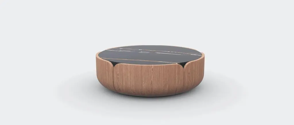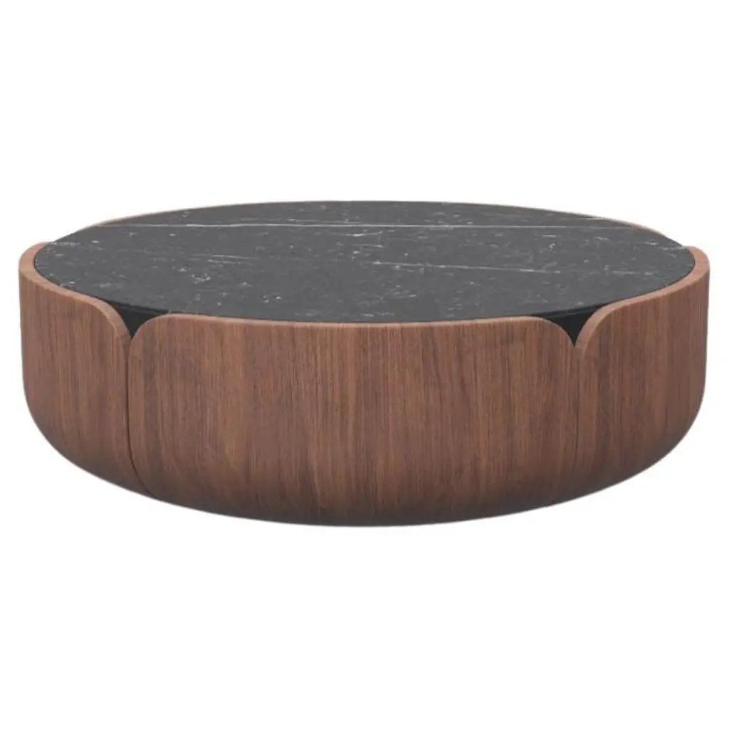 Cherry Sepia Sahara Noir Bloom Coffee Table L by Milla & MilliSigned by Maša Vukmanović, Jelena Lukač Kirš, Jakov ŠrajerDimensions: W 100 x D 100 x H 30 cm Materials: Cherry Sepia, Black Metal, Marble Sahara Noir. Bloom Coffee Table:Flowers are one of nature's most delicate things of wonder. So enchanting, yet so fragile; inspiring, but short lived. Bloom coffee table manages to immortalize that beauty, to encapsulate the magic of a living flower in a fascinating creation of solid wood and marble. It is a single flower that transforms your space. Forever.Milla&Milli started out as a brainchild of two artlovers; a shared dream of two souls in love with design, wood and each other. And to this day, that love and passion is still clearly embodied in every masterpiece we create.Meet Ksenija and Ivić Pašalić, two halves of one Milla&Milli heart and the driving force behind everything you have seen so far.A CELEBRATION of design:"We truly live and breathe design. We love it, respect it, encourage it, promote it. We put it at the forefront of everything we create and with the help of meticulous craftmanship, we build our story through it.Meet our leading designers, Jelena Lukač Kirš and Jakov Šrajer, and the company's art director, Maša Vukmanović."AN ODE to Mother Nature:"We consider ourselves as doers first, talkers second. So, our ode isn't one of words, but of heartfelt and decisive action. And one you are invited to join. Our pledge is to create new life, to plant a new tree for every piece of furniture you buy. Thus, the park forest growing around our facilities stands as a living and breathing reminder of our shared mission — to protect and respect our Mother Nature."