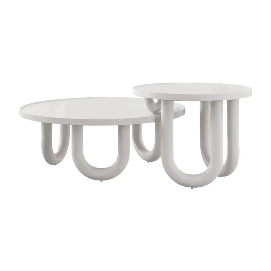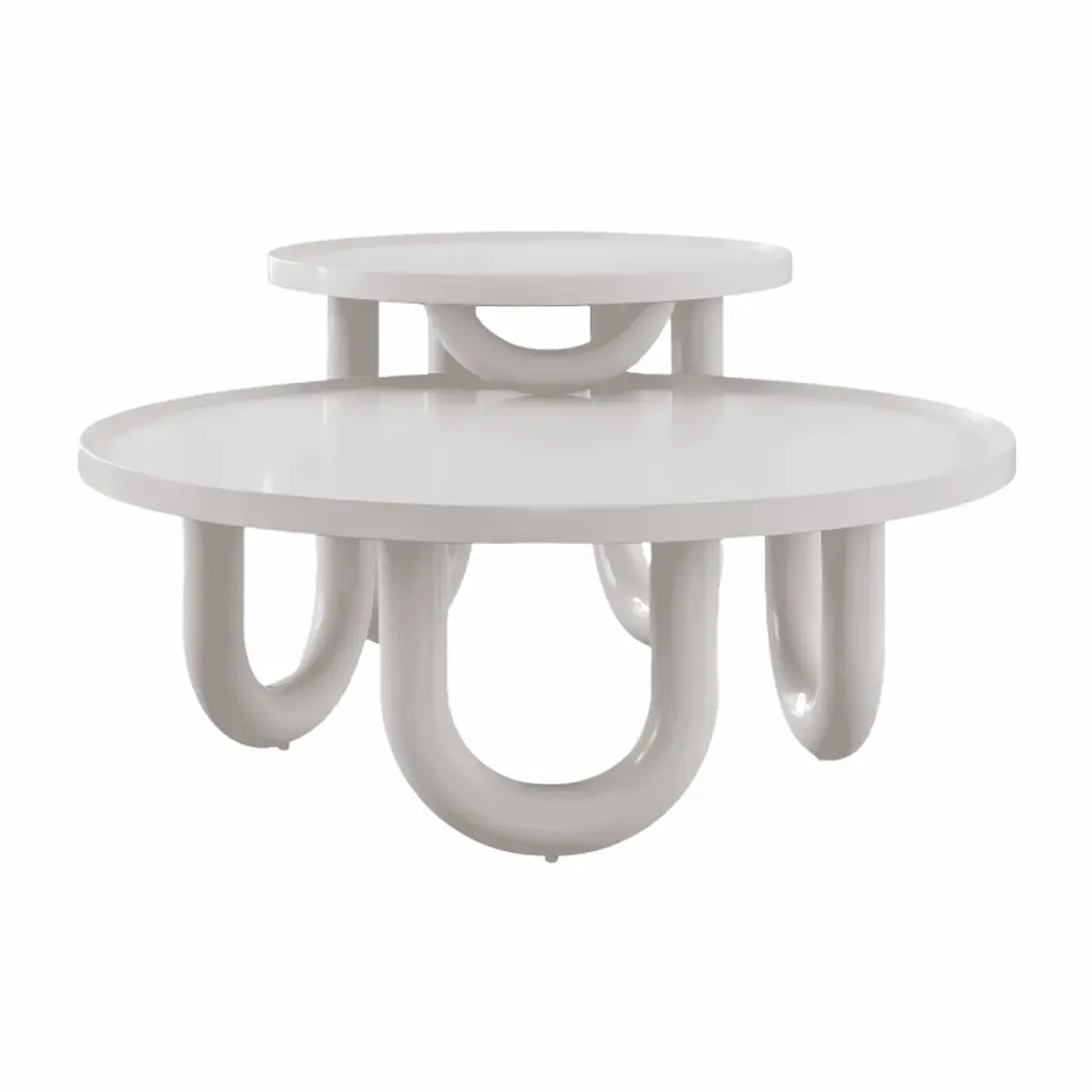 The Cielo Coffee Table Alabaster is a statement of modern elegance and functionality. It boasts a unique two-tiered design with round tabletops that offer ample space for decor, books, or beverages. The curved, piped legs add an artistic touch, creating a visually striking silhouette. The interplay of shapes and levels makes the Cielo Coffee Table a striking yet versatile addition to contemporary living spaces.