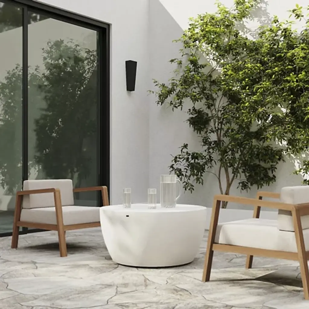 The Circ M2 Indoor/Outdoor Coffee Table from Blinde Design delivers a curved concrete form with bowl-like geometry that flows from base to rim in one continuous sweep. Its generous scale makes it the largest option in Blinde's circular range, while the concrete composite construction withstands both indoor and outdoor environments. The curved profile offers a softer alternative to angular furniture. Discrete detailing maintains the clean aesthetic while ensuring practical durability, and the organic geometry brings flowing lines to modern spaces through its weather-resistant concrete construction.