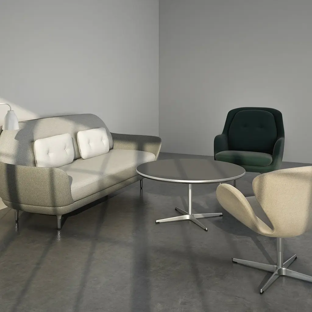 The Coffee Table Series comes with a 4-star base with a satin polished aluminum foot and a satin chromed steel pedestal. NOTE: Laminate tops feature an aluminum edge; walnut has a veneer edge.