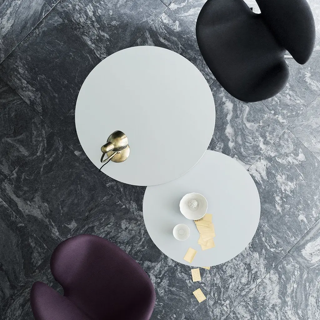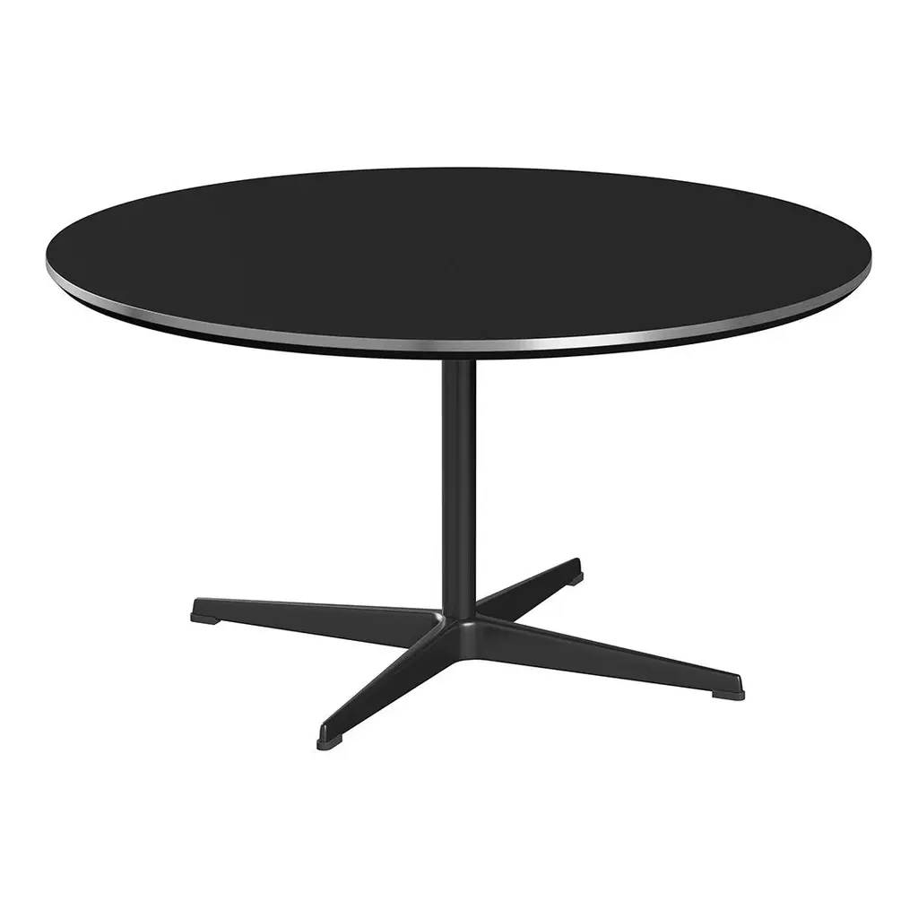 The Coffee Table Series comes with a 4-star base with a satin polished aluminum foot and a satin chromed steel pedestal. NOTE: Laminate tops feature an aluminum edge; walnut has a veneer edge.