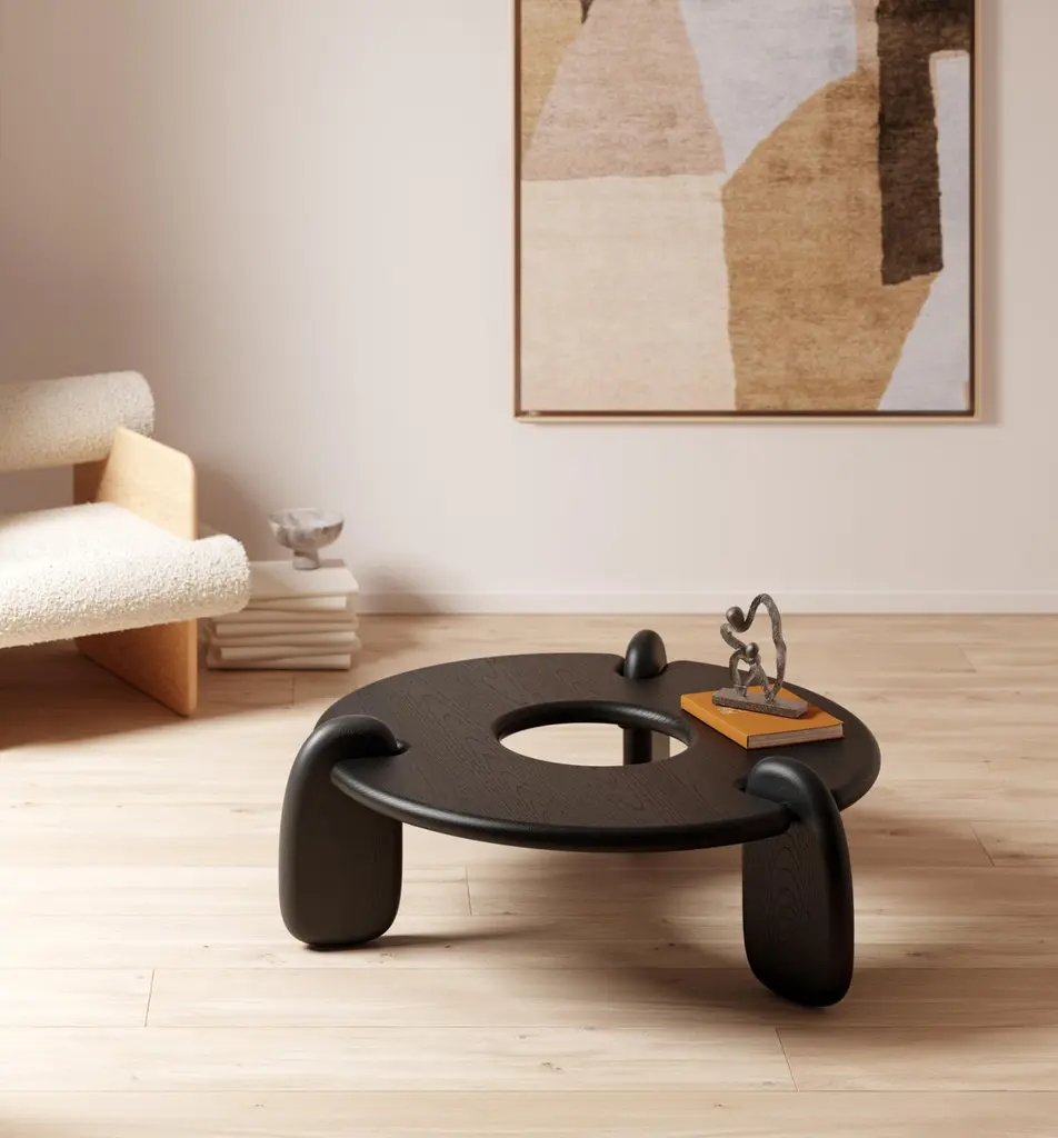 Circular Three-Legged Ebonized Ash Avebury Coffee Table By Objects & Ideas