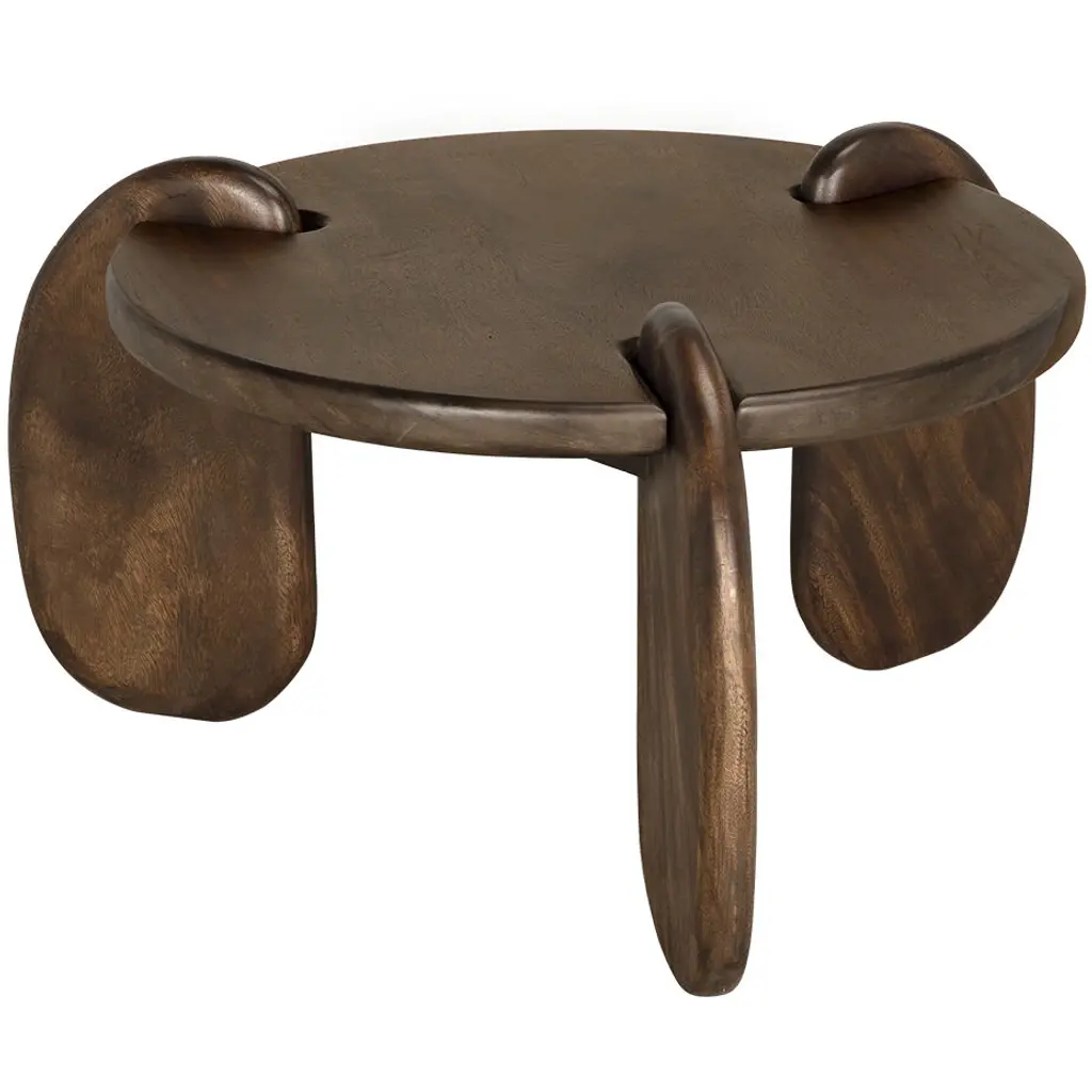 Taking inspiration from neolithic stone circles, the Avebury coffee table by Canadian studio Objects & Ideas is supported by three solid wood pillars that are notched into the slab-like disc surface to produce a piece that is deliberately sculptural. The soft, organic shape of both the pillars and the halo formed by the disk add a lightness to the solidity of the wood. Also available in white oak.The tabletop diameter is 40" with the legs adding 2.5 inches to the width and depth. The tabletop height is 13.4" while the leg height is 15.7"