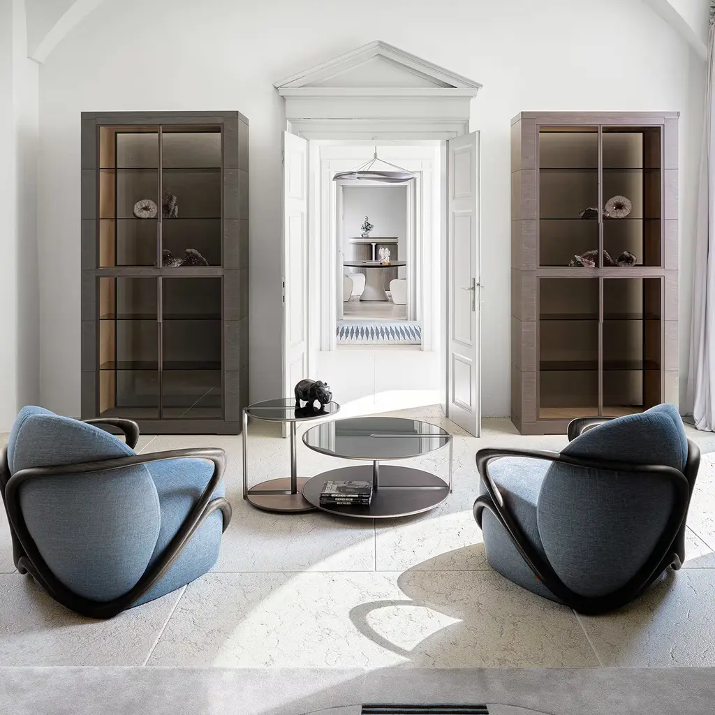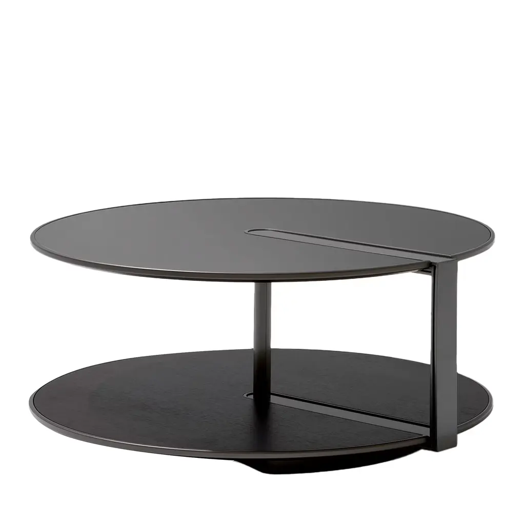 Part of a refined series of coffee tables distinguished by a pewter-finished metal structure and available in three different heights, this coffee table will make a stately accent piece on its own or combined with others from the Clamp Collection. Enriched with a lacquered profile rendered in a liquid metal effect enhanced with leather, glass, or wooden inserts upon request, it is completed with PVC feet and equipped with felt pads. Please consult the Concierge for further information.
