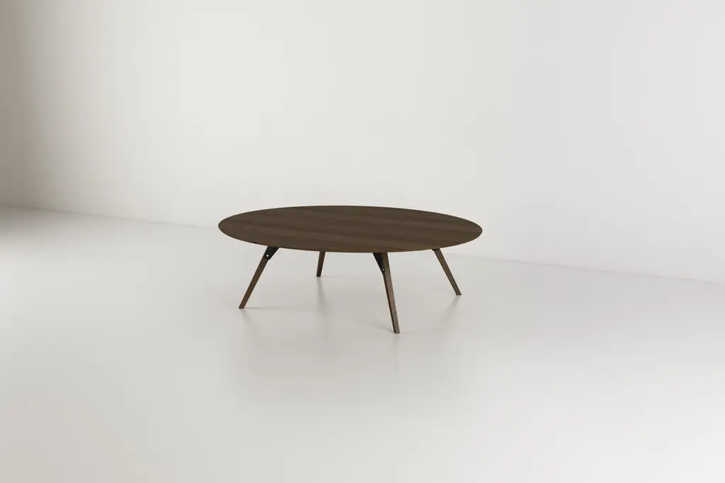 The Clarke Collection comes in ten different table top sizes, two wood species, and two metal finishes. The exposed stainless steel bolts blur the line between Scandinavian and Industrial styles.