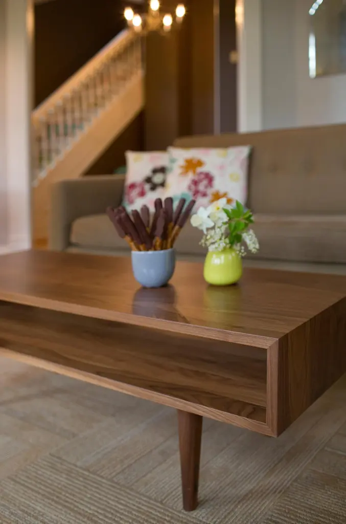 Sleek, modern and classic. A natural juxtaposition. Heavily influenced by mid-century design, this timeless piece complements both contemporary and more traditional interiors. Reinforced mitered joints allow the wood grain to wrap around the piece in one fluid sweep, showcasing the beauty of the locally-harvested, solid wood. And, since a coffee table lays claim to more than just your occassional cup of coffee, this table is finished with a durable, non-toxic finish that stands up to the realities of everyday use. The hand-turned legs come in two height options, easily adapting to a range of spaces. The classic coffee table pairs with our Classic Credenza and our new classic side table. Made in Minnesota.