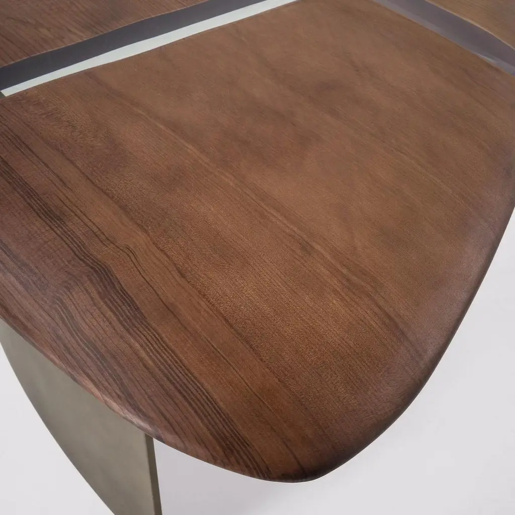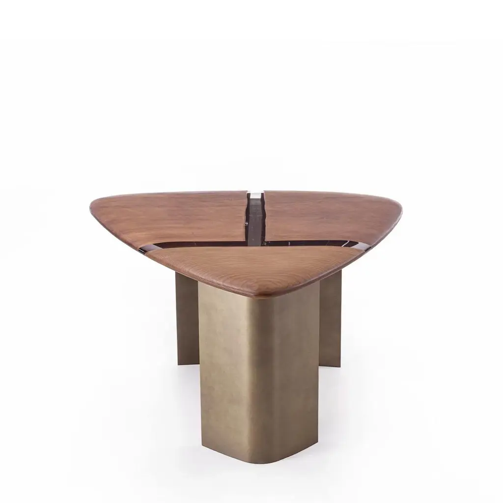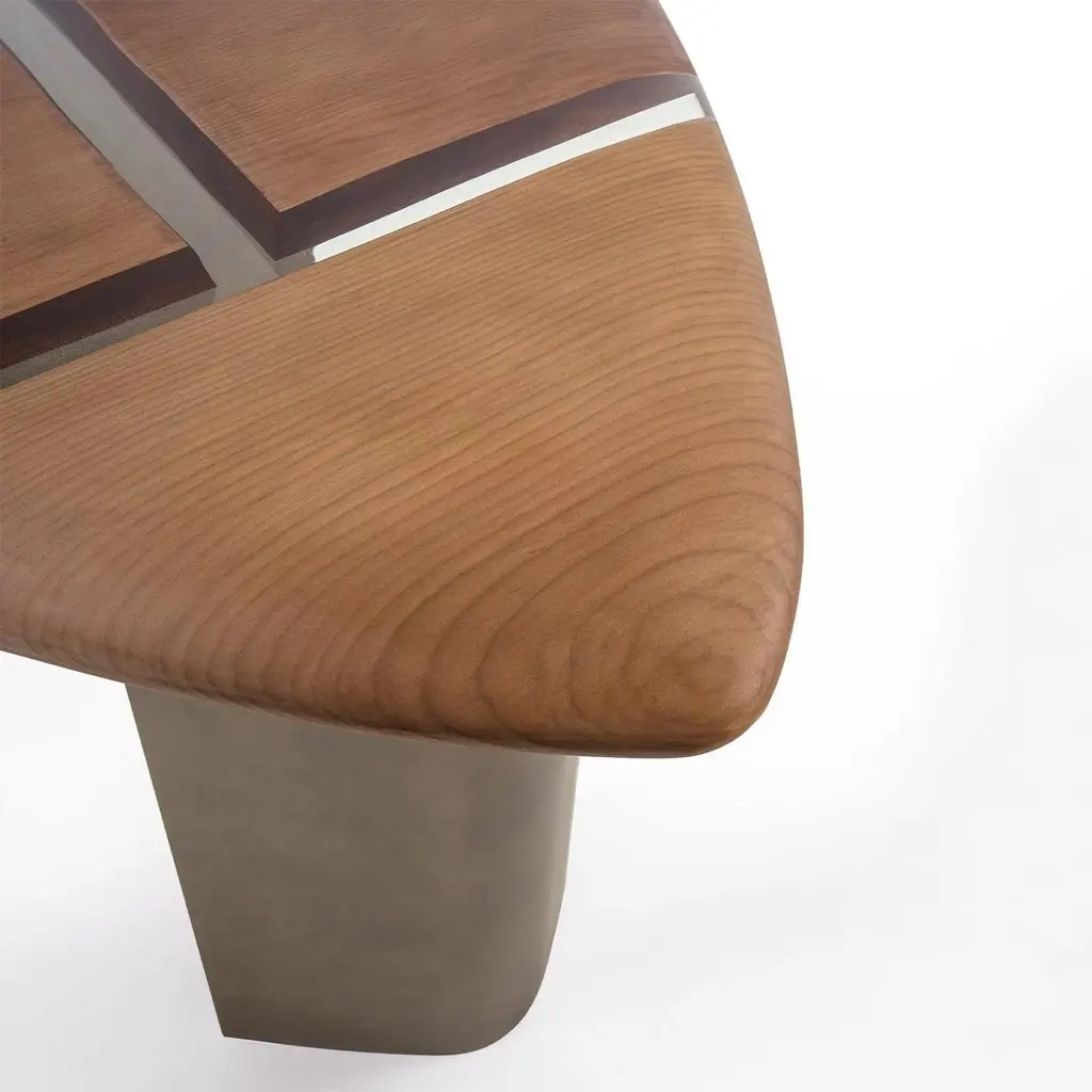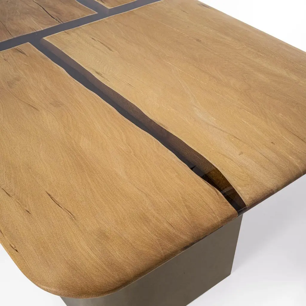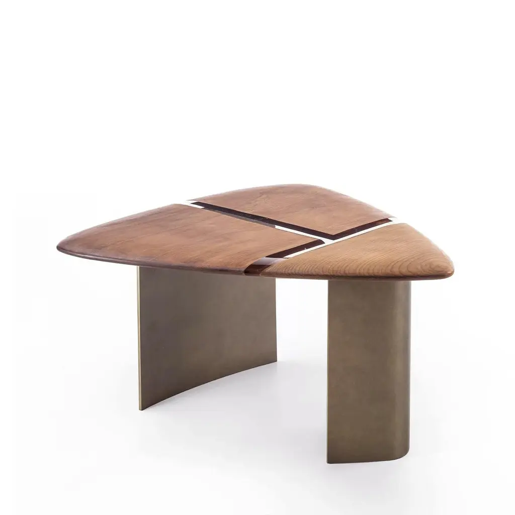 Coffee Table Clevered Kauri Wood Set of 3 with solid Kauri wood parts and resin. With lacquered steel base in bronze finish. Table A/ L81xD87xH46cm.Table B/ L112xD118xH33cm.Table C L120xD60xH33cm.Each table also available in height 33cm, or 46cm, on request.
