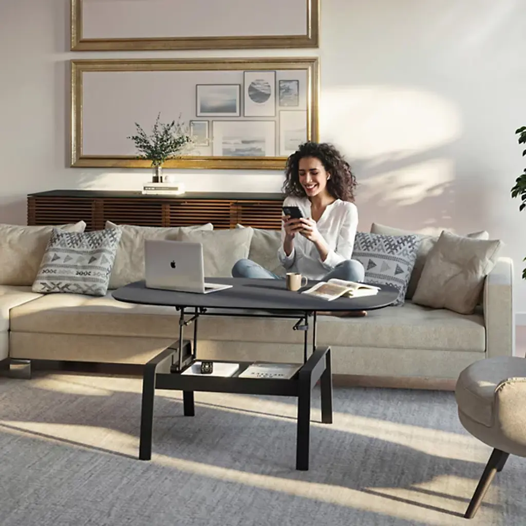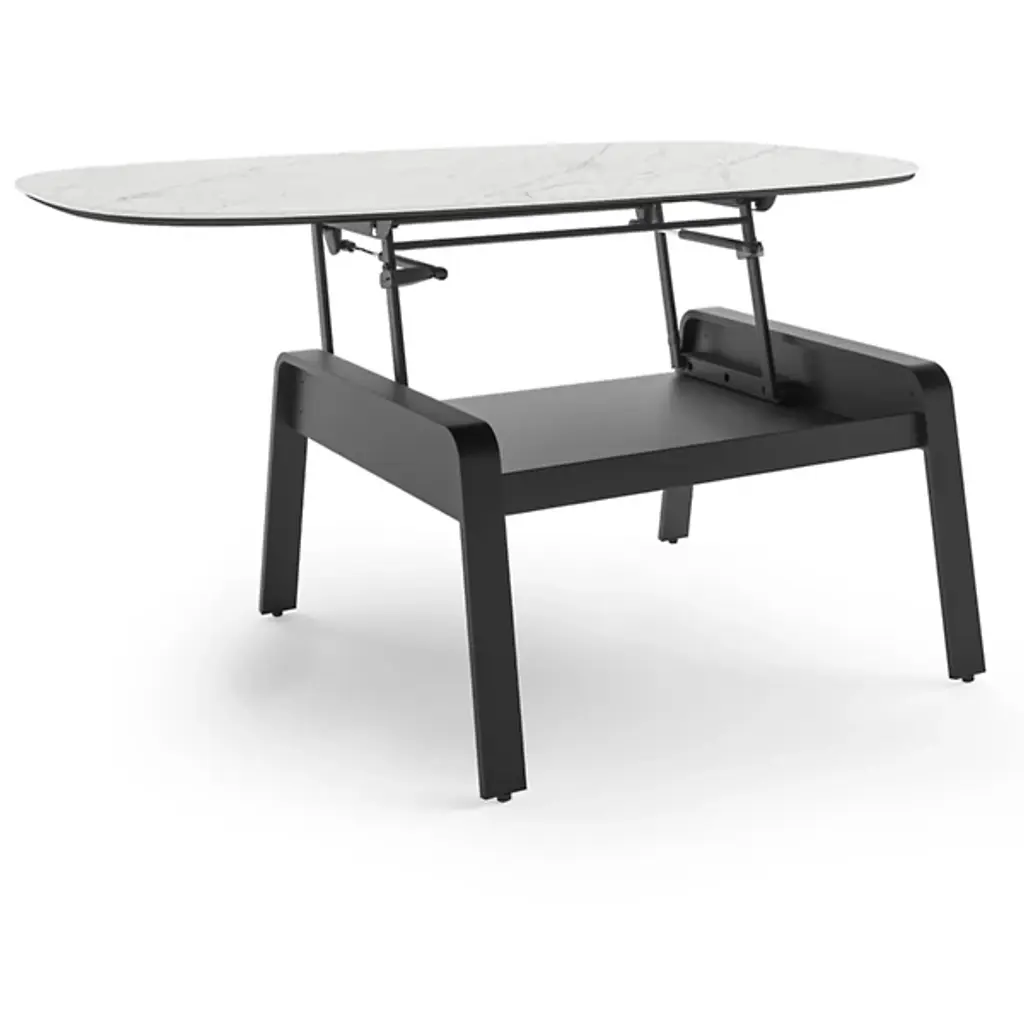 Round out the look of furniture arrangement with the BDI Cloud 9 Lift Coffee Table. This indoor hydraulic coffee table takes the concept of traditional furniture and spins it on its head. Built with a durable porcelain top and convenient lowered lined storage compartment, you'll never lose track of your entertainment essentials. The hydraulic supports allow for an effortless up and down movement, perfect for maximizing your productivity and entertainment time. Use this modern, ultra-versatile indoor coffee table to tie together the look of your living room or finished basement space.