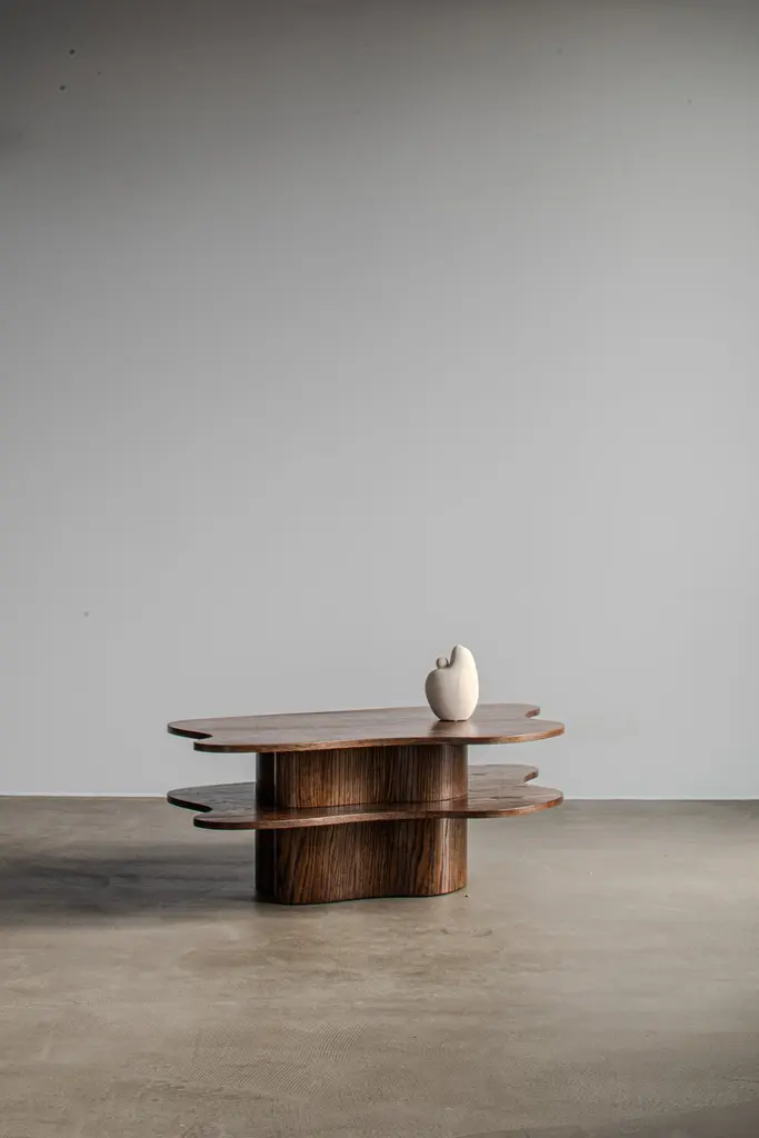 Cloud Coffee Table by PastformDimensions: D 85 x W 135 x H 42 cm.Materials: Stained and varnished wood.Available in different wood color finishes: Whiskey, Rum, BPA, Nobel, Brandy, Schwarz, and Natura. Please contact us.Rooted in a good traditionThe Pastform Furniture studio dates back to the 1990s. Having in mind the idea of a traditional family company, Dawid Gełeta established a carpenter’s shop in 1997. The company specializes in the manual production of utility furniture. Times have changed and with them, fashion has changed. In 2016 we decided to change the direction, following the growing demand for vintage furniture.My name is Mateusz Gełeta, I am the son of the carpenter who founded the company. From an early age, I have watched my dad’s work. He put his whole heart into creating furniture, polishing every detail with his strong hands and making sure that nothing escaped our attention before sending the product to the customer. He made sure that every piece of furniture was perfect and refined. We remain true to these principles.Following the blow, I decided to create a harmonious combination of modern quality with the classic style of the 1960s. This is why I designed and created a unique collection of wonderful furniture, which, in addition to its well-thought-out functionality, also creates a perfect design and composes original arrangements.The golden age of interior designIn the 1960s interiors used to take on a very characteristic touch. All over the world, this style was called a mid-century modern, locally it was simply – retro furniture. Simple, elegant minimalistic form, without unnecessary decorations and splendor. Decorating with the idea of an uncomplicated composition, it allows for an undisturbed selection of the arrangement accessories and emphasizes a high level of functional comfort. One might say – a perfect piece of furniture. Comfortable, hiding surprisingly many items despite quite neat dimensions, made of noble species of wood and created by hand, with a focus on carefully refined details. No wonder its popularity is growing so much.Unique, refined, with a soulEach piece of the Pastform collection represents a unique style. Thoughtful concept of usable comfort, refined details, carefully selected raw materials, and proven accessories. We use only high-quality boards which we veneer with oak, American walnut, and other durable wood species. They are carefully oiled with the best, hard, ecological oil waxes, giving the furniture its final shape. This technology brings out the natural beauty of wood, exposes the grain and unique design of each piece, highlights the beautiful color, and allows to achieve timeless durability.This is how unique, thoughtful, and refined furniture with a soul is created.Thinking about futureWe are trying to positively create the world of which we are a part, contributing to a better tomorrow. We cooperate with local suppliers, support small companies and production plants, care for ecology, and respect the needs of the land. We always strive to establish long-lasting, based-on-trust relationships with customers and contractors.Flexible, with openness and heart on handWe sincerely like what we do. Playing with the shape, structure, and texture of wood is fascinating. Creating new arrangements and coming up with innovations that will meet your expectations. We are proud of our products and we are happy to present you with our collection of refined furniture.All our vintage furniture can be made on request – fulfilling the boldest dreams and fantasies. See our offer and if you want to know more, feel free to contact us. We are waiting for you!