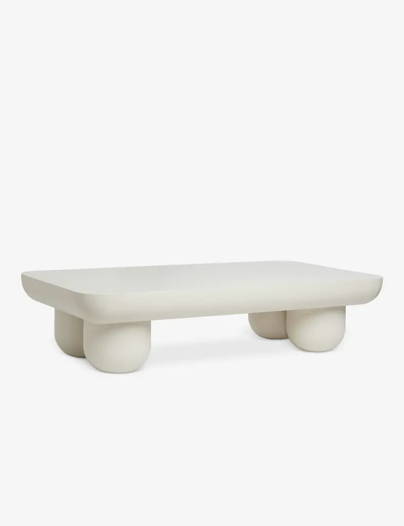 Inspired by the lightness and airy feel of clouds, this coffee table's weighty construction provides a playful contrast to its curved form and matte white finish. The rectangular design of this coffee table offers a spacious surface to anchor a living room or outdoor lounge. This piece is from our exclusive Sarah Sherman Samuel collaboration and features all the trademarks of her warm, edited style.