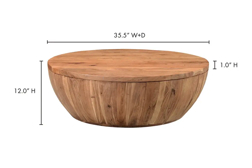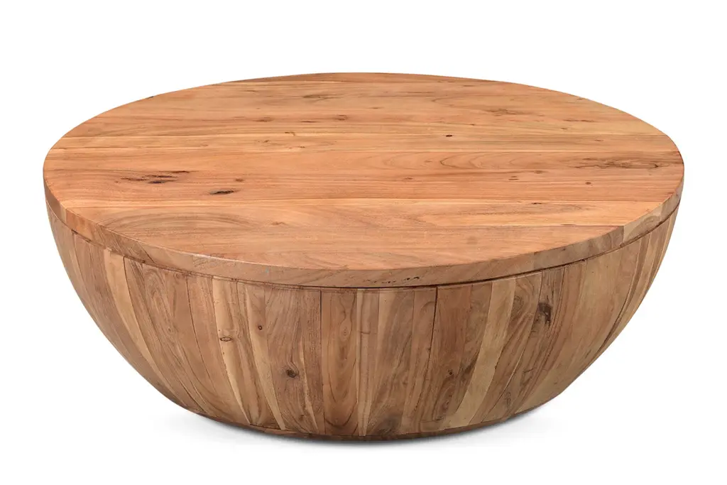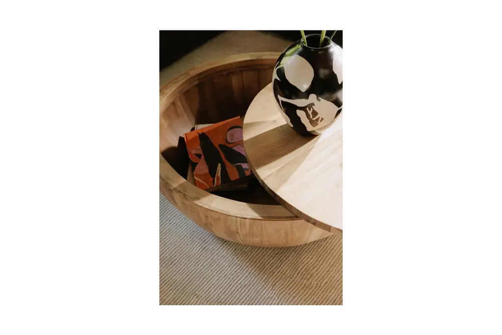 The Cobra Storage Coffee Table is practical, modern, and perfectly (snake) charming! Its bowl-like shape is hollow, with a swiveling tabletop revealing convenient interior storage for all your living room essentials. The table features solid acacia wood construction with a warm, natural finish that displays the stunning natural woodgrain pattern.