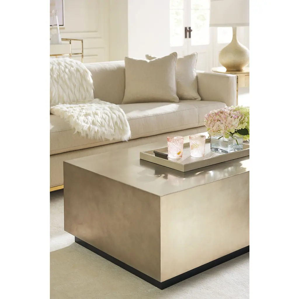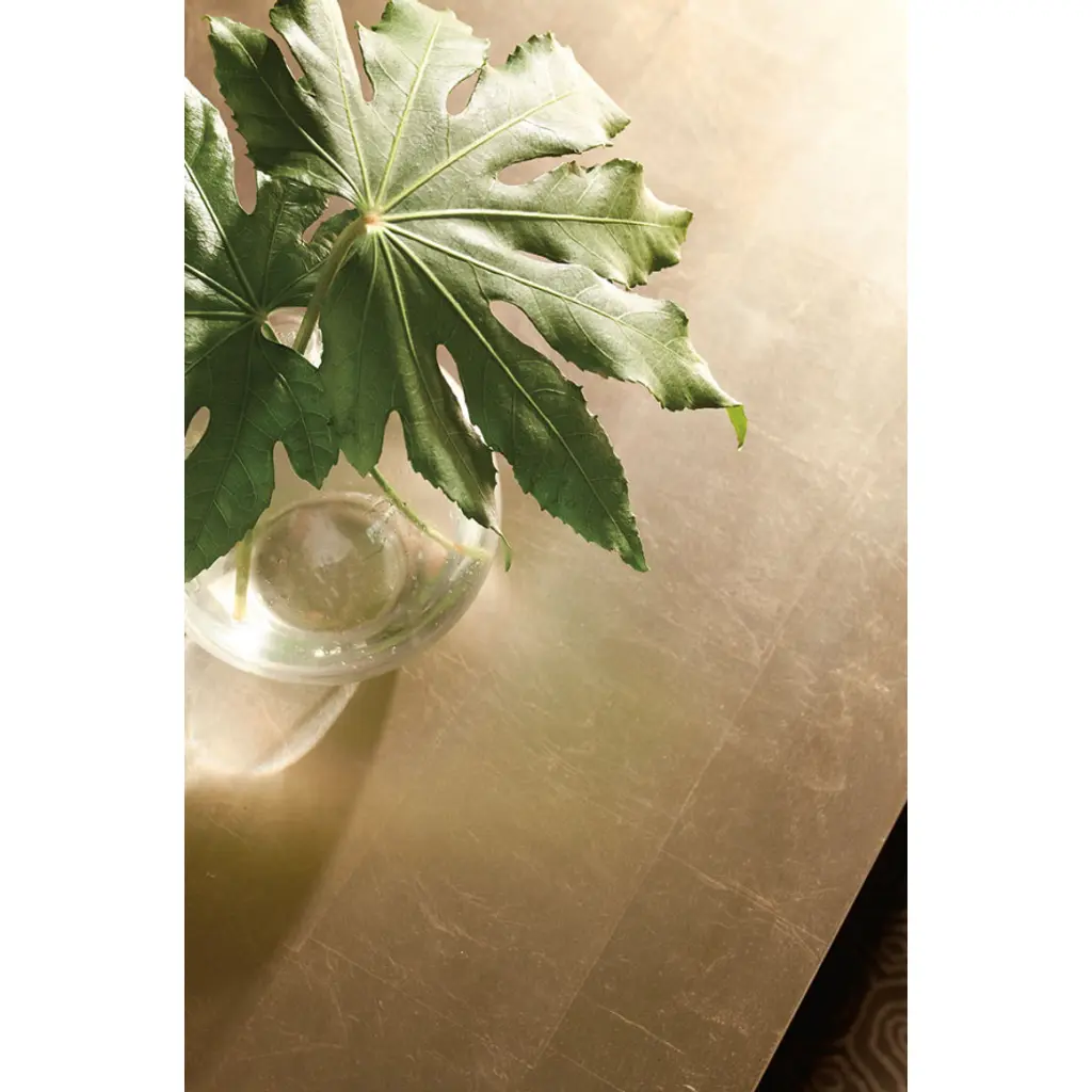A designer’s dream, this 60-inch by 30-inch cocktail table will work anywhere that calls for a little refined elegance. A demurely Taupe Silver Leaf finish has a hint of sparkle and the fade-away black base in Almost Black secures this design in place. Group two or three together for a real crowd pleaser!