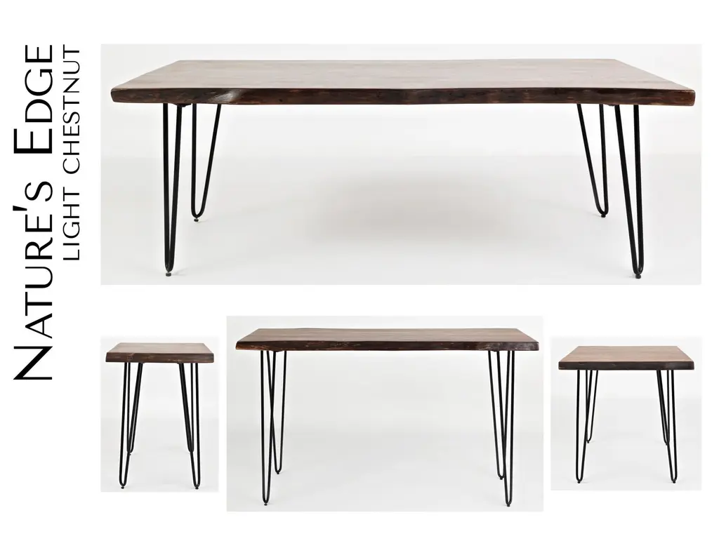 There's nothing we don't love about this collection. From the rich finish to the live edge curves to the hairpin legs, this group hits all of the right notes for high style in your home. This collection includes occasional and dining pieces. From the Manufacturer There's nothing we don't love about our Nature's Edge Collection. From the rich finish to the live edge curves to the hairpin legs, this group hits all of the right notes for high style in your home. Nature's Edge includes occasional and dining pieces.