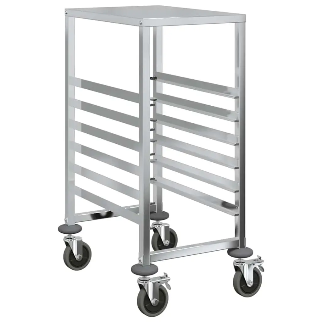 This convenient cocktail table dolly allows you to load all of your pedestal table pieces on one cart. The dolly features sloped shelves that will prevent them from sliding out of the dolly. The upholstered fabric platform top holds your bases and prevents the finish from being scratched. You can easily roll this cart on a truck to transport to different events.