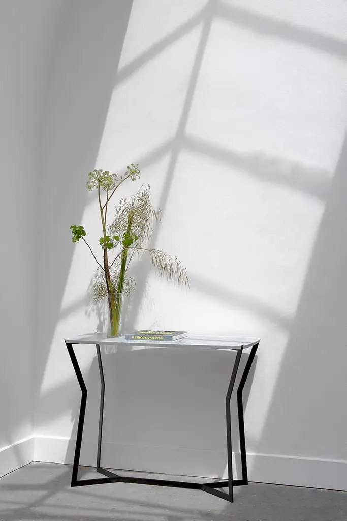 Coffee table, Carrara marble top 20 mm. Base in golden lacqueredmetal or black lacquered bronze metal.Dimensions: 125x70xH35cm