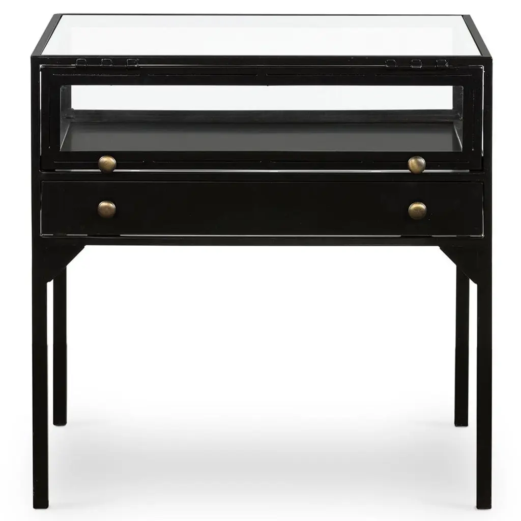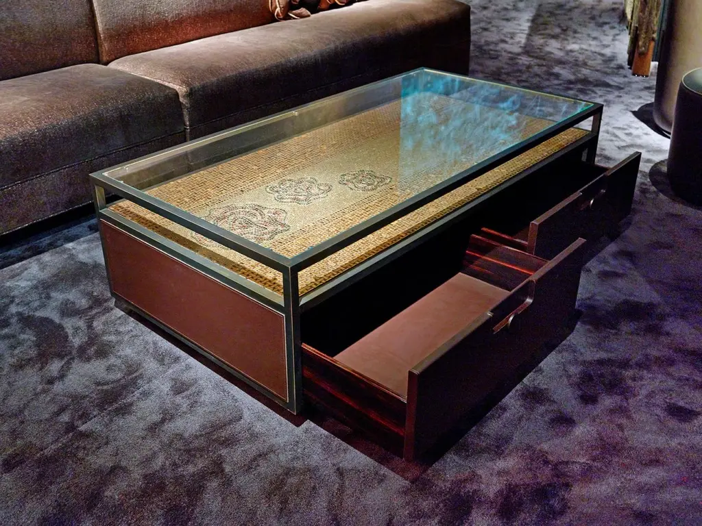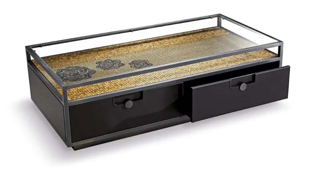 Coffee Table Burnished Brass Finish Structure Drawers Decorated Gold Mosaic Leaf