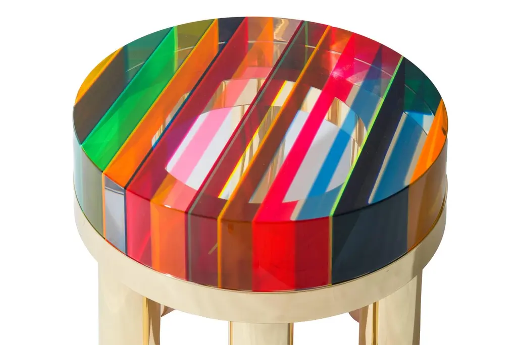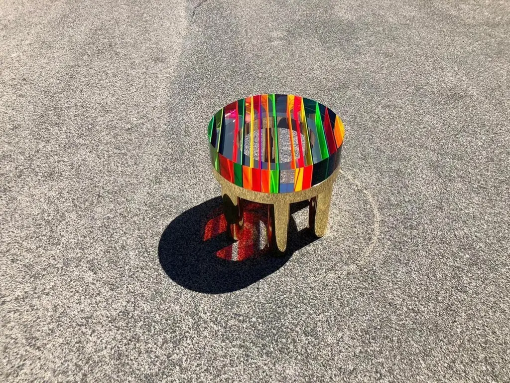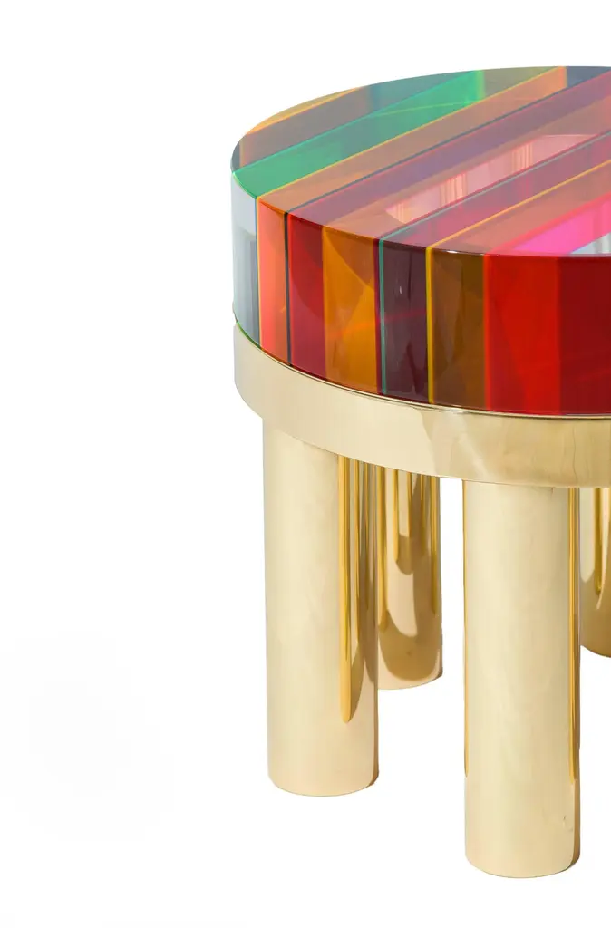 Coffee table in plexiglass of different colors with the brass base designed by Studio Superego for Superego Editions.BiographySuperego editions was born in 2006, performing a constant activity of research in decorative arts by offering both contemporary and vintage works, together with its own limited editions. Superego over the years has produced e made several editions with A. Mendini, a. Branzi, M. Giacon, M. Cibic, A. Mangiarotti, U. La Pietra, etc.Over the last few years, Superego has also developed its own collection designed by its own studio and signed as Studio Superego.Studio Superego takes inspiration from an instinctive passion for minerals where approaching the world of crystals means deeply understanding of the beauty and perfection of nature.