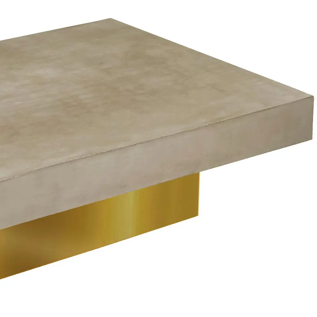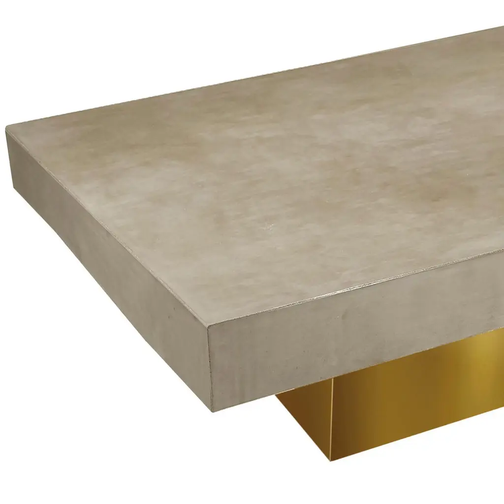 Coffee Table Grey Concrete Scagliola Top Gold Leaf Wooden Base Handmade In Italy