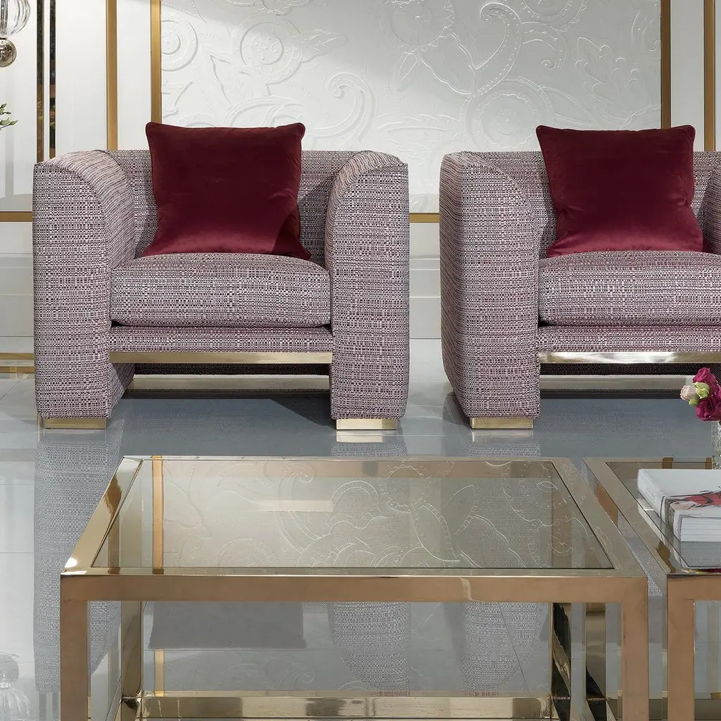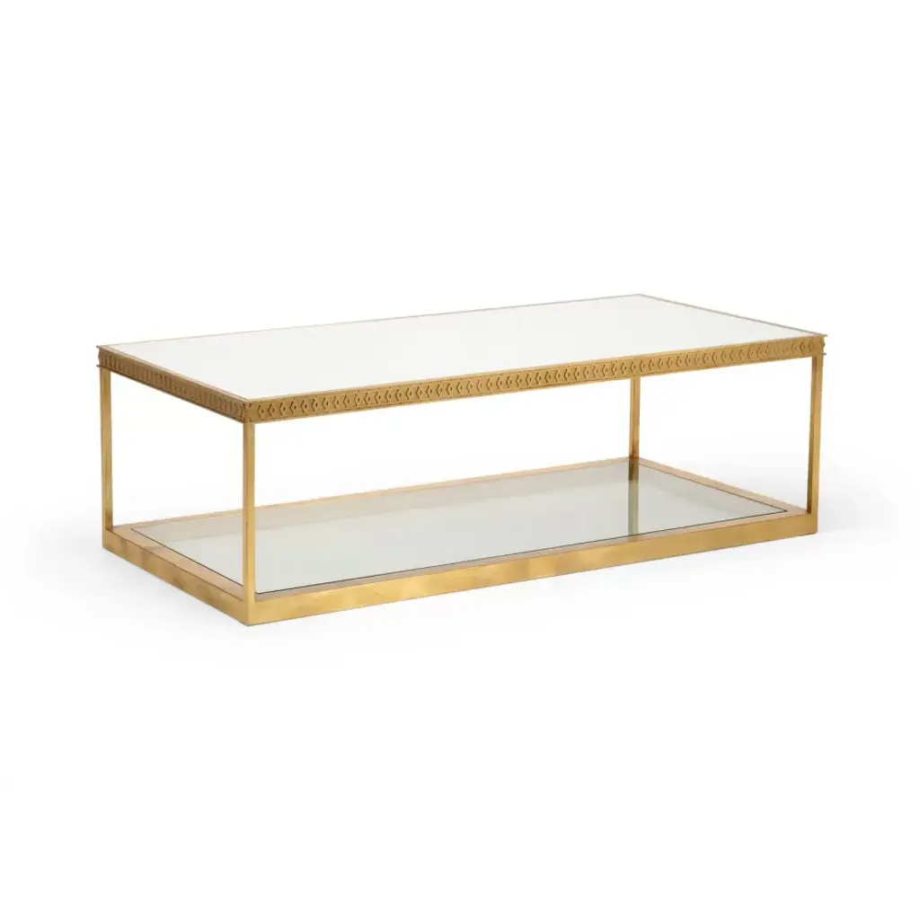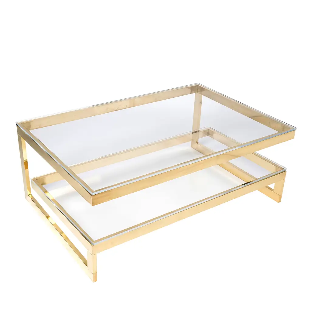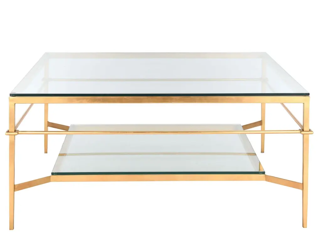 An exercise in elegant minimalism, this coffee table has a square base from which four short legs stem to support a square top. The entire structure is in brass, while the top is made of glass with a bronzed finish. Simple and sophisticated, this coffee table is a timeless addition to both a contemporary and a classic decor and will enhance the look of any living room.
