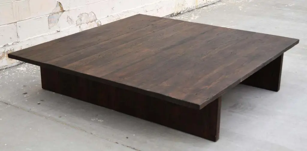 This reclaimed pine coffee table is seen here in 60" x 60". Each table is bench-made in our Los Angeles workshop using traditional traditional carpentry techniques, no nails or metal fasteners of any kind, just mortise and tenon construction reinforced with handcut wooden dowels.