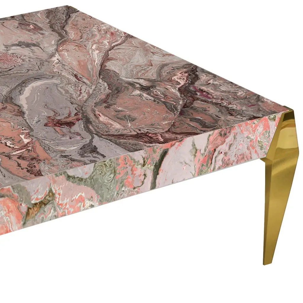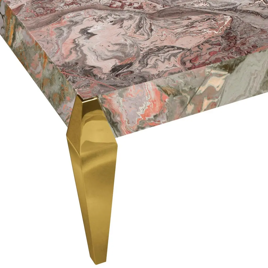 Coffee Table Modern Scagliola Top Gold Leaf Base Handmade In Italy By Cupioli